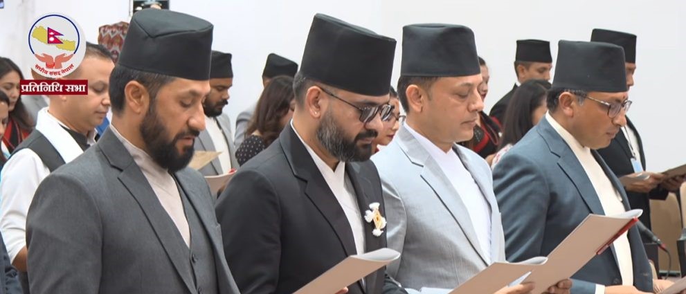 काठमाडौँ । प्रतिनिधिसभाका नवनिर्वाचित सांसदहरूले आज सिंहदरबारस्थित संसद्को अस्थायी भवनमा आयोजित सभामा पद तथा गोपनीयताको शपथ लिएका छन्। प्रतिनिधिसभा...