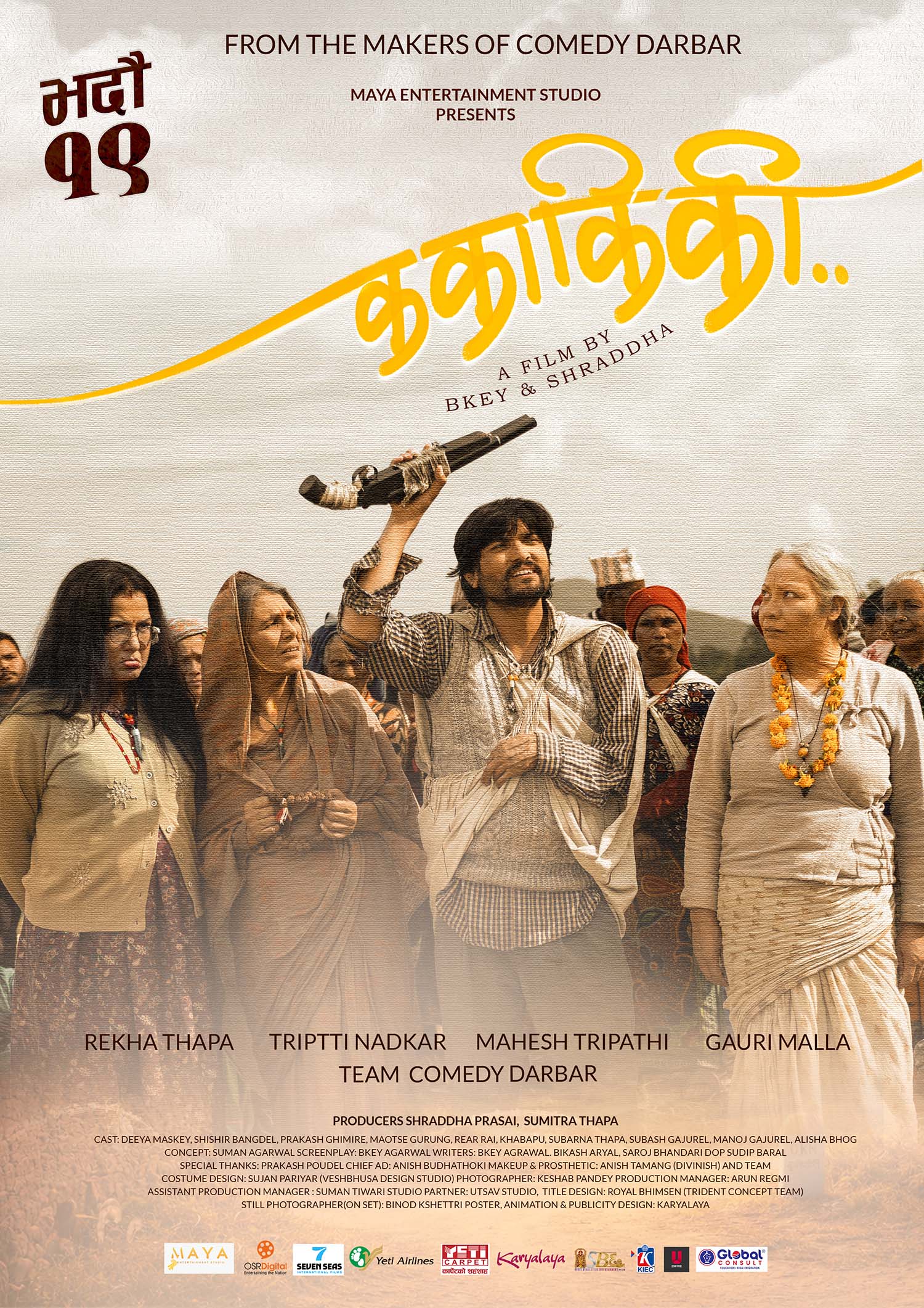 काठमाडौँ । चर्चित टेलिभिजन शो कमेडी दरबारको टिमले निर्माण गरेको नयाँ फिल्म 'ककाकिकी'को रिलिज मिति घोषणा गरिएको छ । निर्माण टिमले एक पोस्टर सार्वजनिक गर्दै रिलिज मिति भदौ १९ तोकेको छ । पोस्टरमा फिल्मका मुख्य चार कलाकारको लुक्स समेत सार्वजनिक गरिएको छ । जसमा अभिनेत्री गौरी मल्ल, तृप्ति नाडकर, रेखा थापा र अभिनेता महेश त्रिपाठी क्यारेक्टर लुक्समा देखिएका छन् ।