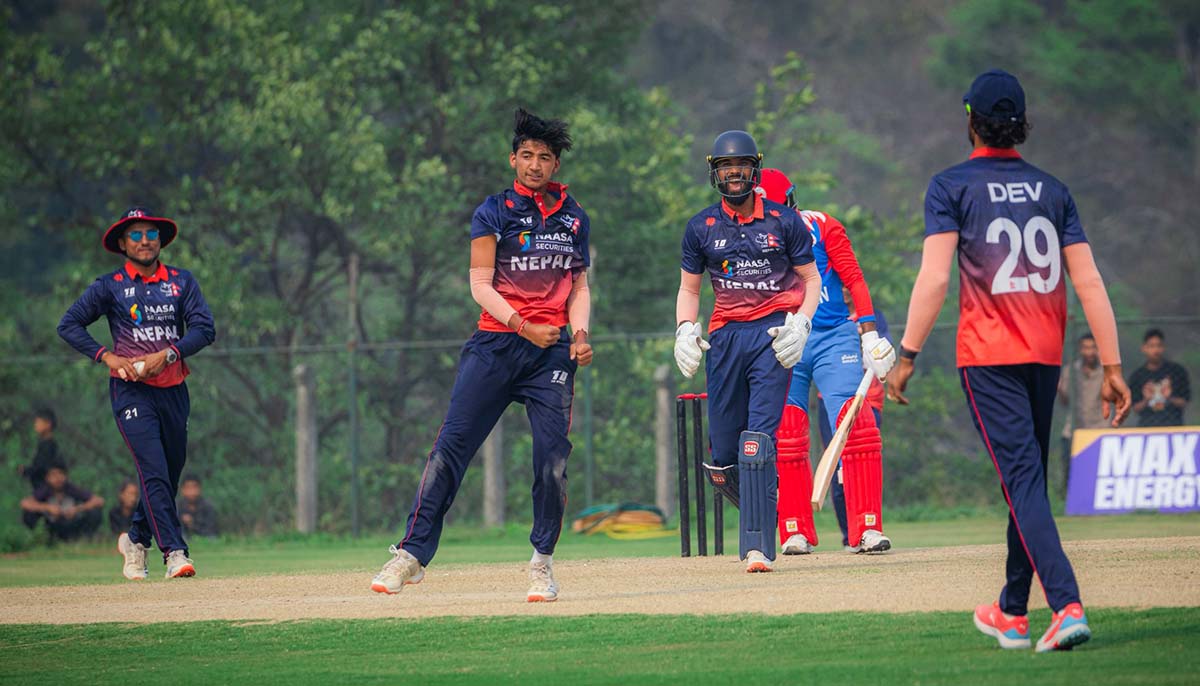 त्यस्तै, हेमन्त धामी, आकाश चन्द र शेर मल्लले समान २–२ विकेट लिए भने सन्तोष यादवले १ विकेट लिए। ओमानले लिग–२ अन्तर्गत सोमबार यूएई र बुधबार नेपालको राष्ट्रिय टोलीसँग प्रतिस्पर्धा गर्नेछ ।