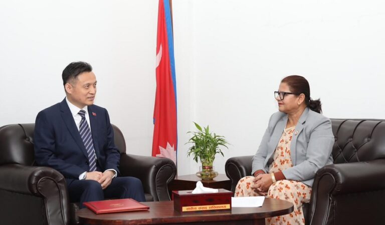 काठमाडौं । सिंहदरबार मा भएको एक महत्वपूर्ण शिष्टाचार भेटमा लीला कुमारी भण्डारी र नेपालका लागि नवनियुक्त चिनियाँ राजदूत चाङ माओमिङ बीच द्विपक्षीय सम्बन...