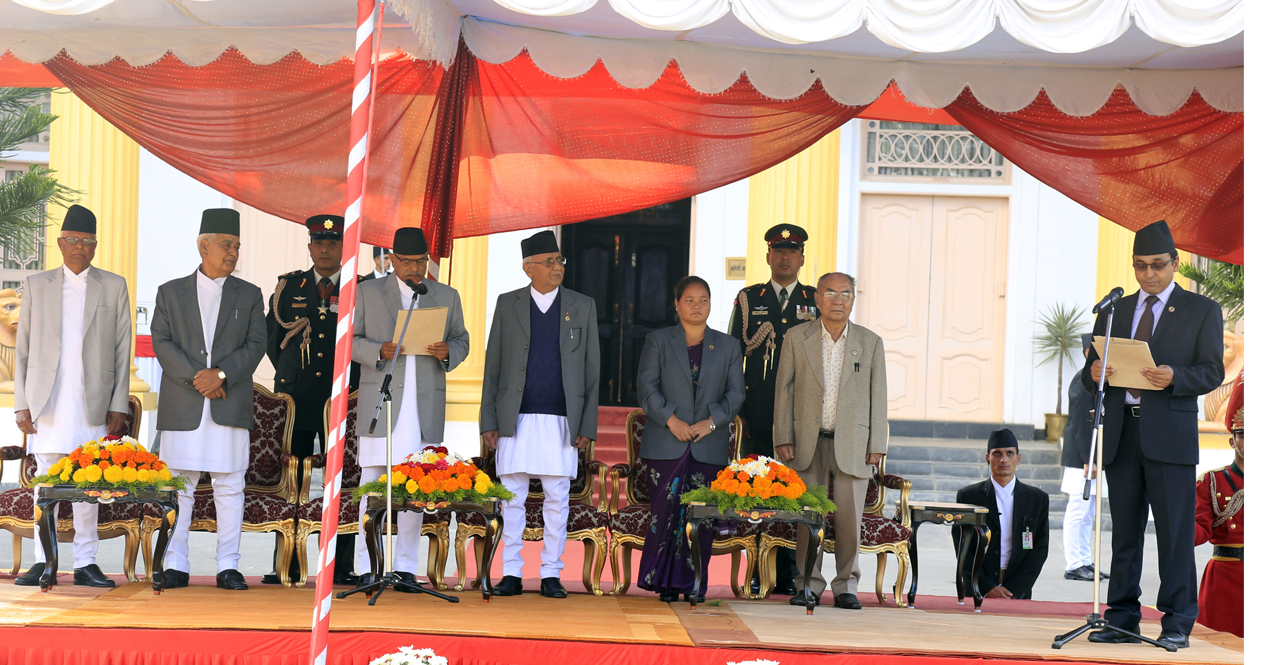 नवनियुक्त मन्त्रीहरुले राष्ट्रपति डा. रामवरण यादवसमक्ष पद तथा गोपनियताको सपथ लिएका छन् ।  सरकारमा उपप्रधानमन्त्रीको संख्या तीन पुगेको छ । रायमाझीसहित उपप्रधान एवं भौतिक योजनामन्त्री विजय गच्छदार छन् भने उपप्रधान एवं परराष्ट्रमन्त्री कमल थापा छन् ।