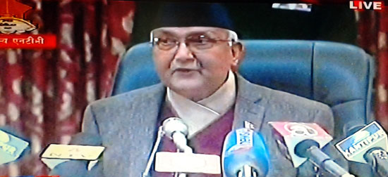 \"KP-Oliभारतको अघोषित नाकाबन्दीले नेपाल कुनै एक मुलुकप्रति कति परनिर्भर रहेछ भनेर आँखा खोलेको भन्दै प्रधानमन्त्री ओलीले यस्ता योजनाहरु कुनै देश विरुद्ध नभएको प्रष्टिकरणसमेत दिए ।