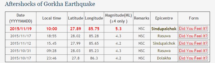 सिन्धुपाल्चोक केन्द्र बनाएर ५.३ रेक्टरस्केलको भूकम्प