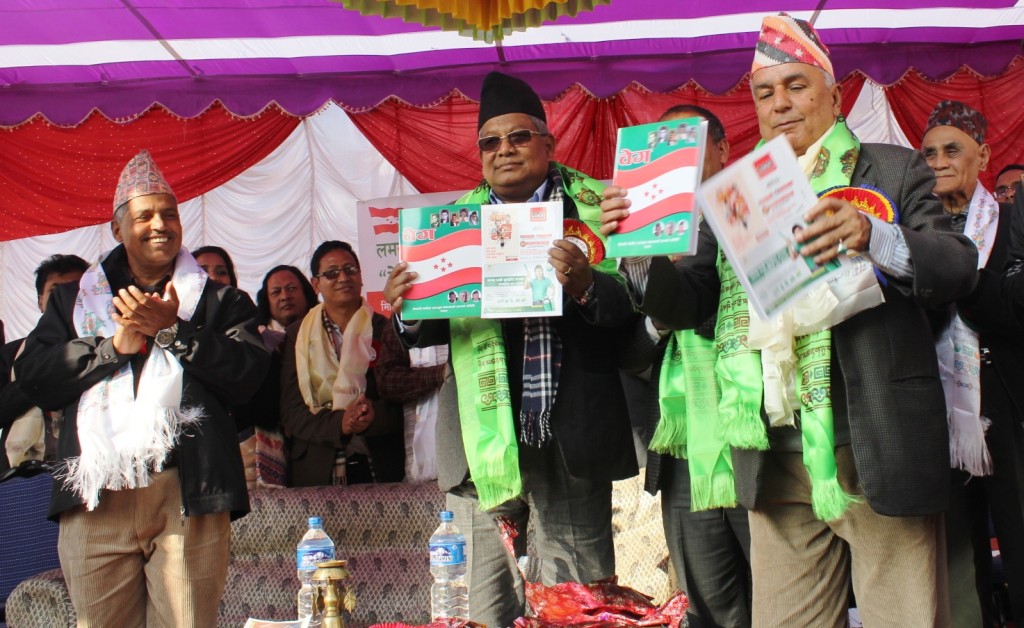 \"poudel-2\" काठमाडौं । नेपाली काँग्रेसका कार्यवाहक सभापति रामचन्द्र पौडेलले राष्ट्रको जिम्मेवारीबाट नेपाली काँग्रेस कहिल्यै पछाडि नहट्ने बताएका छन् । नेपाली काँग्रेस लमजुङ–काठमाडौँ सम्पर्क समितिले आज आयोजना गरेको ‘वेग स्मारिका’को विमोचन समारोहमा बोल्दै कार्यवाहक सभापति पौडेलले नेपाली काँग्रेसको आधारभूमि तराई भएको भन्दै मधेसी जनताको भावनालाई समेटेर अगाडि बढ्न काँग्रेस कटिबद्ध भएको बताए । उनले, “हामी मधेसी नेता र सरकारको मध्यस्तता गरेर अगाडी बढ्छौँ ।” नेता पौडेलले नेपाली काँग्रेस राष्ट्रवादी शक्ति भएकाले मुलुकलाई जोगाउने प्रमुख जिम्मेवार नेपाली काँग्रेसको काँधमा रहेको स्पष्ट पारे । उनले संविधान निर्माण हुनु ऐतिहासिक कार्य भएकाले मधेसका जायज मागलाई शंशोधनमार्फत टुङ्याउन सकिने बताए । “सरकार गम्भीर भए मधेसको समस्या तत्काल समाधान हुने थियो”, कार्यवाहक सभापति पौडेलले भने । नेपाली काँग्रेसका केन्द्रीय सदस्य एवम् राज्य व्यवस्था समितिका सभापति दिलबहादुर घर्तिले नेपाली काँग्रेसको नेतृत्वमा बनेको संविधान कार्यान्वयन गर्न पार्टी सभापति सुशील कोइरालाले प्रधानमन्त्री पदमा उमेद्वार दिएको बताए । उनले देशमा संविधान निर्माण भएकाले अब मुलुकलाई विकासको बाटोमा अगाडी लैजानु आवश्यक रहेको औँल्याए । नेपाली काँग्रेस लमजुङका सभापति कृष्णप्रसाद कोइरालाले आगामी १३ औँ महाधिवेशनमा पार्टीभित्र देखिएको ६०÷४० को भागवण्डा अन्त्य गरेर अगाडी बढ्नु आवश्यक रहेको बताए । उनले काठमाडौँभित्र बसेर राजनीति गर्नुभन्दा स्थानीय तहमा गएर त्यहाँको वस्तुस्थित बुझेर अगाडी बढ्न आग्रह गरे । कार्यक्रममा पूर्व जलश्रोत राज्यमन्त्री रामबहादुर गुरुङ, नेपाली काँग्रेस लमजुङका पूर्व सभापति तुलसीनारायण श्रेष्ठ, क्षेत्रीय सभापति विष्णु धिताल, लमजुङ–काठमाडौँ सम्पर्क समितिका अध्यक्ष लक्ष्मीकान्त पौडेल, नेपाल विद्यार्थी सङ्घ लमजुङ–काठमाडौँ सम्पर्क समितिका अध्यक्ष किशोर पौडेल, नेपाली काँग्रेस महासमिति सदस्य डा. टकराज गुरुङ, दलित आयोगकी सदस्य कोपीला विश्वकर्मालगायतले हिमाल, पहाड, तराई, पूर्व, पश्चिम, उत्तर, दक्षिण सम्पूर्ण भागका जनताको भावनालाई नेपाली काँग्रेसले समेटेर अगाडी बढ्न पार्टी नेतृत्व गम्भीर हुनुपर्नेमा जोड दिए । सो अवसरमा लमजुङ मिडिया नेटवर्क प्रालीका अध्यक्ष वृद्धसिंह गुरुङ नेपाली काँग्रेसमा प्रवेश गरेका थिए । उनले कार्य वाहक सभापति पौडेलले पार्टी प्रवेश गराएका थिए ।