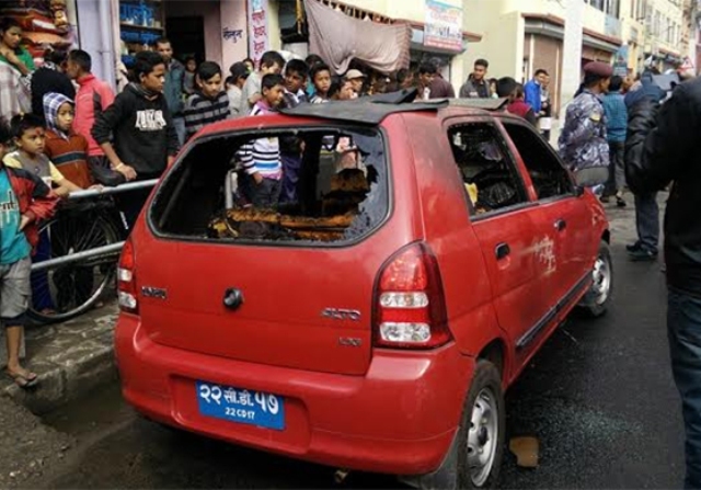 विराटनगरमा फेरि जल्यो भारतीय दुतावासको गाडी