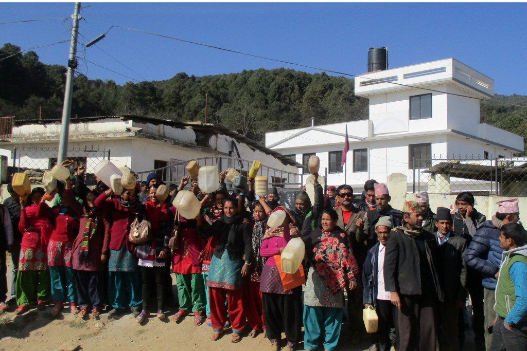 \"Rss_Images_1451383679385_GB-Dolakha-water\"दोलखा  । खाली भाँडा बोकेर खानेपानीको माग गर्दै नाम्दु गाविसका स्थानीय बासिन्दा जिल्ला प्रशासन कार्यालय दोलखा आइपुगेका छन् । मङगलबार दिउँसो करिब ६० परिवार खाली जर्किन सहित पानी माग्दै प्रमुख जिल्ला अधिकारीसामु आइपुगेका हुन् । विगत दुई महिनादेखि पानीका लागि दुई घण्टाको बाटो हिँड्नु परेको गुनासोसहित उनीहरुले प्रशासन कार्यालय घेराउ गरेका हुन् । दोलखाको दक्षिणी गाविस नाम्दु–३ का स्थानीय बासिन्दा एक महिनाअघि प्रशासनमा खानेपानीको माग गर्दै दिएको निवेदनमाथि सुनुवाई नभएर प्रजिअ गुहार्न चरिकोट आइपुगेका हुन् । विसं २०२४ सालदेखि काब्रे गाविसबाट खानेपानी ल्याएर पानी खाँदै गरेकामा जग्गाधनी रविचन्द्र ढुङ्गेलले पानी बन्द गरिदिएपछि आफूहरु समस्यामा परेको स्थानीयवासी रामशरण नेपालीले बताए । खानेपानी नभएपछि करिब ६६ घरधुरी प्रभावित भएको अर्का स्थानीयवासी रीताकुमारी भुजेलले जानकारी दिए । यता, जिप्रका दोलखाले सम्बन्धित पक्षसँग छलफल गरी समाधान खोज्ने बताएको छ ।