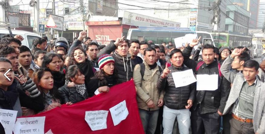 भाडा समायोजनको माग गर्दै क्रान्तिकारीद्धारा राजधानीका क्यम्पस अगाडी विरोध प्रदर्शन