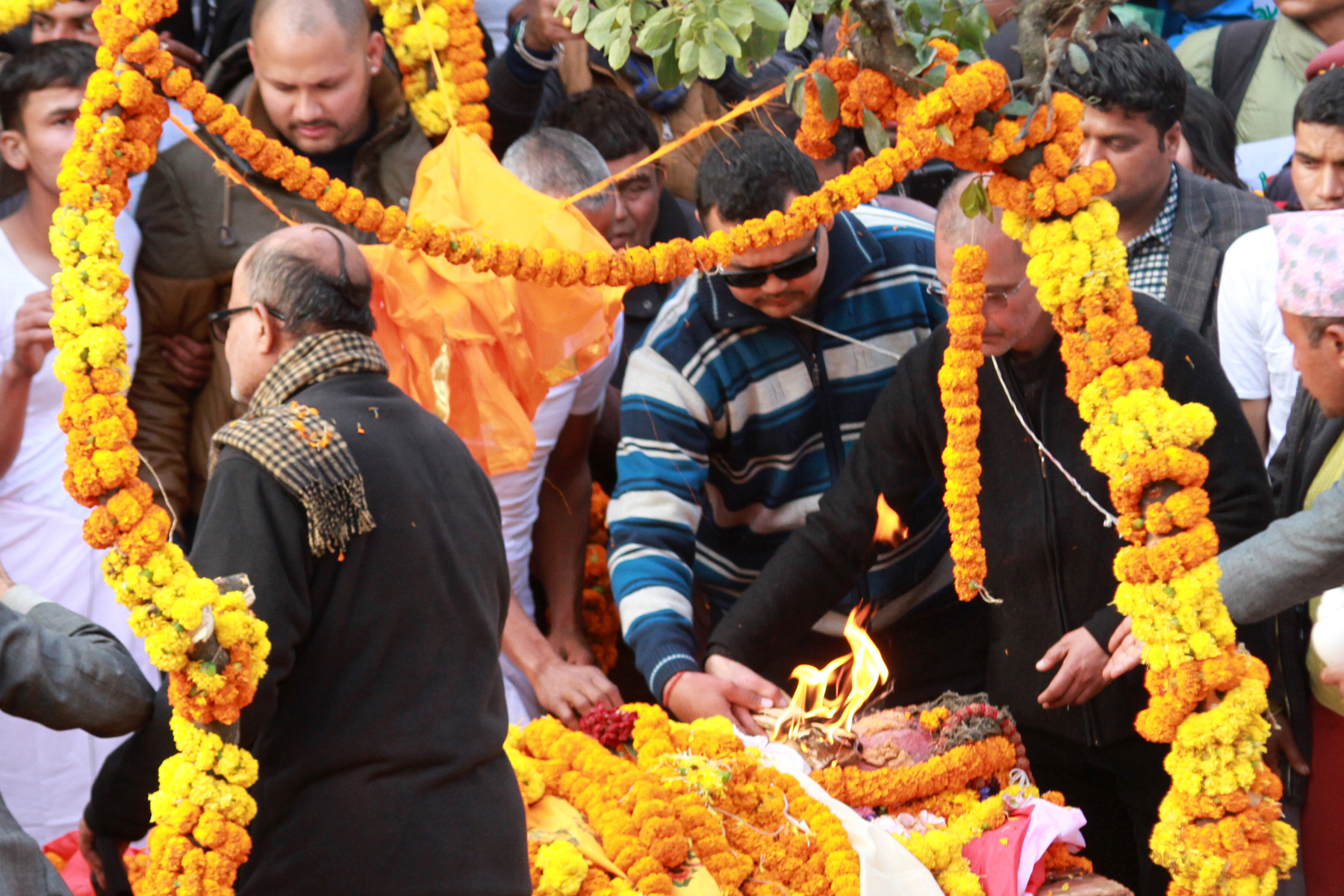 उनको दाहसंस्कारलाई नजिकबाट नियाल्न पार्टीका कार्यकर्ता एवम् सर्वसाधारणको ठूलो जमात बाग्मतीमा जमेको पानी भित्रै पसेको थियो।