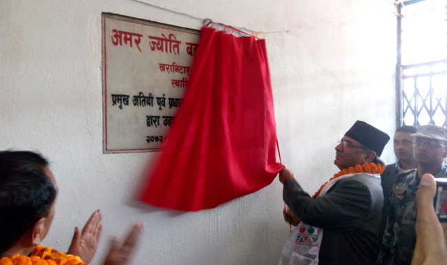 बिबिार नुवाकोटको खरानीटारमा अमरज्योति बहुमुखी क्याम्पसको नवनिर्मित भवनको उद्घाटन गर्दै उच्चस्तरीय राजनीतिक समितिका संयोजकसमेत रहनुभएका अध्यक्ष प्रचण्डले नेपालीको स्वाभिमानमा अडान कायमै रहेका कारण नाकाबन्दी खुलेको उल्लेख गरे ।