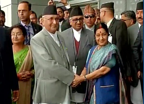 दिल्लीमा प्रधानमन्त्री ओलीलाई सुष्माको स्वागत