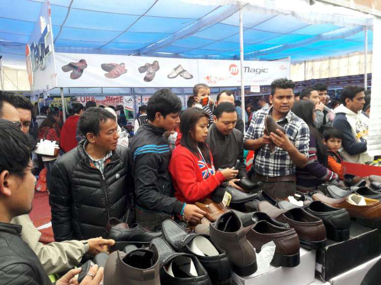 \"d401213441680f99af354a5f014cb88584279ba6f5f9370c441fd8641b6219ab-750\"काडमाडौं । राजधानीको भृकुटीमण्डपमा बुधबारदेखि जुत्ता चप्पलको बृहत सेल मेला शुरु भएको थियो । यस मेलामा जुत्ता तथा चप्पल खरिद गर्ने उपभोक्तालाई आयोजकले टिभी उपहारसमेत दिने भएको छ । मेलामा शनिबारको दिन ग्राहकको अनुमान भन्दा अत्याधिक उपभोक्तको भिड भएको सहभागी कम्पनी एस के सुजका प्रबन्ध निर्देशक जिवन नेपाली ले जानकारी दिए । मेला अवधिभर जुत्ता तथा चप्पल खरिद गर्ने उपभोक्ताहरुबाट लक्की ड्र मार्फत १ जनालाई एलईडी टिभी उपहार दिईने भनि उपहार योजना राखेपछि उपभोक्ताहरुको उल्लेखनीय सहभागिता भएको हो । \"4aab2c94e5c075244002490af08006531cc4b34c7ef63b6658519e2bb2cd8f8e-750\" मेलामा विभिन्न मोडलका जुत्ता तथा चप्पलमा २० देखि ७० प्रतिशतसम्म छुट दिइएको छ । मेलामा विशेषतः गर्मी यामको आगमनलाई ध्यानमा राखि गर्मी सुहाँउदो नयाँ नयाँ मोडलका जुत्ता तथा चप्पल विक्रिका लागि राखिएको छ । यस मेलामा ८ वटा स्वदेशी जुत्ता उत्पादक कम्पनीहरुको सहभागिता रहेको छ । सहभागी कम्पनी तथा ब्राण्डहरुमा म्याजिक चप्पल, सिटिजन फुटवेयर, कोरल सुज, एस के सुज, रियल सुज, ग्लोबल शु, कनेक्सन शु र सक्सेस शुको सहभागिता रहेको छ । मेलामा सबै वर्ग र क्षमताका उपभोक्ताहरुलाई समेट्ने गरी २५० देखि ५००० सम्मका जुत्ता चप्पल बिक्रिमा राखिएको छ ।   मेला सोमबारसम्म जारी रहने भएतापनि आईतबार र सोमबार बिशेष छुट प्रदान गरिने सहभागी कम्पनी सक्सेस सुजका प्रबन्ध निर्देशक बासु नेपालीले बताए । बृहद् सेल मेला सोमबार सम्म चल्नेछ ।