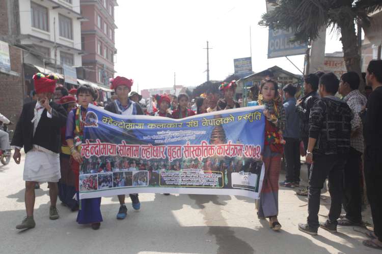 \"_MG_0109-750\" काठमाडौ । तामाङ गीत सङ्गीतमा पश्चिमेली भाका म्हेन्दोमाया समुदायमा प्रचलित साङ्गीतिक माध्यम बनेको छ । यसैको सम्बद्र्धन गर्ने उद्धेश्यले ‘म्हेन्दोमाया कलाकार संघ नेपाल’को स्थापना भएको छ । यसैको सार्वजनिकिकरण गर्दै हिजो २२ गते शनिबार म्हेन्दोमाया सोनाम ल्होछार बृहत साँस्कृतिक कार्यक्रमको आयोजना गरियो । बालाजुस्थित दिपज्योति बिद्यालयको प्राङ्गणमा आयोजित सो कार्यक्रमको माननियद्वय धनबहादुर घले र परशुराम तामाङले छ्योमे बालेर उद्घाटन गरेको थिए । संस्थाको अध्यक्ष सागर एस् वाईबाको सभापतित्वमा सम्पन्न उक्त कार्यक्रम औपचारिक र अनौपचारिक सांगीतिक बिशेष गरी दूई चरनमा सम्पन्न भएको थियो । \"_MG_0138-750\" उपाध्यक्ष रोशन फ्युबाद्वारा स्वागत गरिएको सो सत्रमा अतिथिहरु क्रमश ः महादेवटार गुम्बा काठमाडौका प्रमुख नोर्बु लामा, नेपाल तामाङ घेदुङ नुवाकोटका अध्यक्ष जयमान वाईबा, संचारकर्मी अर्जुन बहादुर तामाङ, धादिङ नुवाकोट समाज यु.के का उपाध्यक्ष तुलबहादुर तामाङ, म्हेन्दोमाया परिबार दोहा कतारका श्याम मम्बा तामाङ र विशेष अतिथिद्वयले गीत संगीत मानव सभ्यताको पहिलो भाषा भएको बताए । यसैले मानिसलाई सांस्कृतिक पाठ सिकाउने गरेको बताए । सोही क्रममा सम्पूर्ण तामाङहरुको आवाज तामाङ भ्वाइस् डट कमको पनि सार्वजनिक गरिएको थियो । नुवाकोट, धादिङ र रसुवाको बिशेषतः तादी खोला पारी गाउँहरुमा मानव सभ्यतासँगै बिकसित भएको घोडचढी नाच , बंदेल नाच, लामा नाच, झाँक्री नाचसहितको झाँकी र्याली बालाजुको माछापोखरी चोकदेखि नयाँ बसपार्क हुदै कार्यक्रम स्थल दिपज्योति प्राङ्गणमा पुगेको थियो । \"_MG_0158-750\" संस्थाका महासचिब राम गोम्जा र बनु लोप्चनद्वारा संचालित उक्त कार्यक्रममा म्हेन्दोमायाका संरक्षक पूर्ण पाख्रिन, गायक सागर एस वाईबा, गायक रोशन फ्युबा, गायिका मिना लामा , गायिका मनमाया वाईबा, गायक आरम्भ तामाङ, गायक पुर्ण तामाङ , गायक राम गोम्जा, गायिका टिकामाया चोथेन, राज किङ वाईबा र जम्बुलिङ फिल्मस् समूहको नृत्यसहित तीन दर्जन कलाकारले बेजोड प्रस्तुति गरेका थिए ।