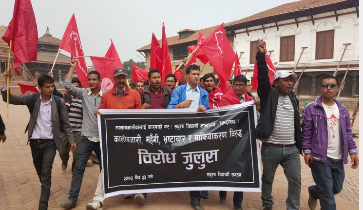 पेट्रोलियम पदार्थमा भएको कालोबजारी विरुद्ध विद्यार्थीको विरोध प्रदर्शन