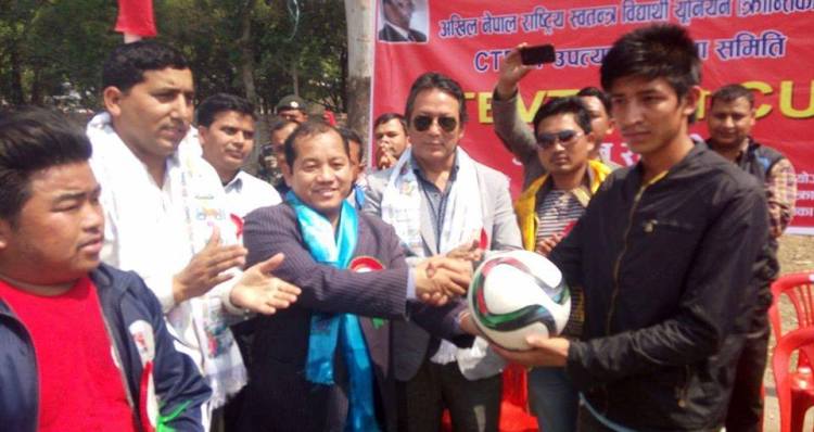 \"ctevt काठमाडौं । आपूर्तिमन्त्री गणेशमान पुनले कालोबजारीलाई तह लगाउन विद्यार्थीको सहयोग लिने बताएका छन् । सीटीईभीटी कप फुटबलको विहीबार कीर्तिपुरस्थित मैदानमा उद्घाटन गर्दै नउले सिंहदरबारमा आश्रय लिएका कालोबजारीलाई तह लगाउन सरकार कस्सिएको बताए । तर सरकारले तह लगाउन नसके विद्यार्थीको सहयोग माग्ने उनको भनाइ छ । मन्त्री पुनले आयल निगमको भण्डारण क्षमता छिट्टै नै बढाइने बताए । अहिले निगमको भण्डारन क्षमता १६ दिनको मात्रै रहेको उल्लेख गर्दै छिट्टै नै ९० दिनको बनाइने बताए । मन्त्री पुनले सरकारले मुलुकका सात वटै प्रदेशका इन्धन भण्डारण केन्द्र बनाउने तयारी गरेको बताए । तत्कालका लागि पाँचखाल, खैरेनीटार र बट्टारमा भण्डारण केन्द्र वनाइने उनले बताए । अखिल (क्रान्तिकारी)का वरिष्ठ उपाध्यक्ष नरेन्द्र न्यौपानेले त्रिवि विनियमका आफूहरु स्ववियू निर्वाचनमा जान आतुर रहेको बताए । राखेपका पूर्व सदस्यसचिव एवं अखिल नेपाल खेलकुद महासंघका अध्यक्ष युवराज लामाले नयाँ संविधान कार्यान्वयनका लागि खेलकुद मार्फत लाखौं युवाहरुलाई गोलवन्द गर्नुपर्नेमा जोड दिए ।