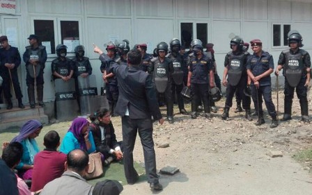 \"karmachari-beurocrate\"काठमाडौं । निजामती कर्मचारी आधिकारिक ट्रेड युनियनको निर्वाचन रोक्न माग गर्दै सिंहदरबारभित्रै कर्मचारीहरुले नाराबाजी र प्रदर्शन गरेका छन् । वैशाख १० गतेका लागि तोकिएको युनियनको निर्वाचन रोक्न माग गर्दै सिंहदरबारभित्र प्रदर्शनमा उत्रिएका कर्मचारीहरुले मन्त्रालय र प्रहरीको गाडी समेत तोडफोड गरेका छन् । उनीहरुले मन्त्रालयबाहिरको निर्वाचन कार्यालयको झ्याल र प्रहरीको गाडीको सिसा तोडफोड गरेको प्रहरीले जनाएको छ । आन्दोलन र तोडफोडमा उत्रिएका १० कर्मचारीलाई प्रहरीले पक्राउ गरेको छ । प्रहरीको लाठीचार्जबाट अनलाइनखबरका फोटो पत्रकार कविन अधिकारी घाइते भएका छन् । सिंदरबार परिसरभित्र कुनै पनि प्रदशर्न र अान्दाेलन गर्न पाइँदैन । सिंहदरबार भित्र पार्टीकाे झण्डा तथा तुल ब्यानर समेत लैजान नपाइने नियम भए पनि कर्मचारीहरू भने मन्त्रालयमै  अान्दाेलन गर्दै ताेडफाेडमा उत्रिएका थिए ।