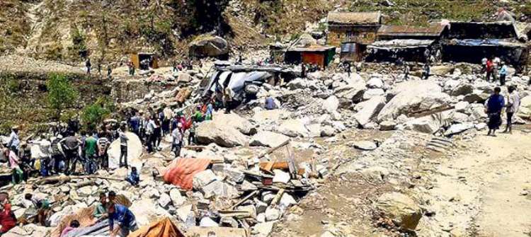 \"Flood-at-surkhet_923921908-750\" सुर्खेत । पहिरोसँगै आएको बाढीले दैलेख र कालीकोटको सिमानामा रहेको दहीखोला बजार बगाएको छ । भीषण वर्षासँगै पहाडबाट झरेको पहिरोले दहीखोला बजार बगरमा परिणत भएको छ । शुक्रबार साँझ असिनापानी बर्सिएपछि दहीखोलामा बाढी आएको थियो । आजको अन्नपूर्ण दैनिकमा खबर छ– खहरे खोलामा आएको बाढीले एकजनाको ज्यान लिएको छ । जिल्ला प्रहरी कार्यालय दैलेखका अनुसार पहिरोमा पुरिएर ३५ वर्षीया गीता थापामगरको ज्यान गएको हो । उनको शव शनिबार सुरक्षाकर्मीले निकालेका थिए । बाढी आएपछि दैलेख सिहासैन ९ का रंग विक बेपत्ता भएका छन् । उनको खोजी भइरहेको जिल्ला प्रहरी कार्यालय दैलेखका डीएसपी वीरबहादुर वलीले बताए । पहिरो र बाढीले बजारमा रहेका दैलेखतर्फका ८ र कालीकोटतर्फका सात घर बगेका छन् । अत्यधिक वर्षाका कारण बजारभन्दा माथि रहेको लेकबाट झरेको पहिरो र दहीखोलामा आएको बाढीले हेर्दाहेर्दै बजार बगाएको हो । बजारमा व्यवसाय गर्दै आएका व्यापारी गोकर्ण रावतले पहाडबाट खसेको पहिरोसँगै खोलामा आएको बाढी बजारमा पसेको बताए । उनले भने, ‘साँझ एकाएक ठूलो पानी पर्‌यो । माथि लेकबाट झरेको पहिरोले दहीखोला बौलायो । भाग्यले बजारका धेरैजना भाग्न सफल भयौं तर हामीले हेर्दाहेर्दै बजार बग्यो ।ु पहिरोमा छोरी गुमाएकी धनादेवी थापाले भनिन्, ‘साँझपख माथि लेकमा पहिरोको ठूलो आवाज आयो । हामी घरबाट निस्केर भाग्यौं । हामीले हेर्दाहेर्दै दैवले छोरी गीतालाई लग्यो । चाहेर पनि बचाउन सकेनौं ।ु बजार नै बगेपछि स्थानीय बासिन्दा बिचल्लीमा परेका छन् । सडकमा काम गर्न पुगेका मजदुर र स्थानीय बासिन्दा गरी एक सयभन्दा बढीले भागेर ज्यान बचाएका थिए ।