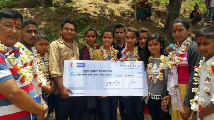 \"dhurmus-suntali-donation-750\" काठमाडौं । सिन्धुपाल्चोकको गिराञ्चौर एकीकृत बस्ती निर्माणमा जुटेका हाँस्य कलाकार सीताराम कट्टेल (धुर्मुस) र कुञ्जना घिमिरे (सुन्तली)लाई देश विदेशबाट सहयोगको आइरो लागेको छ । काभ्रेमा भूकम्पपीडितका लागि एकीकृत बस्ती निर्माण गरी गिराञ्चौरमा पनि सामाजिक अभियान थालेपछि धुर्मुस–सुन्तलीको जोडीले ढाडसमात्र पात्र पाएका छैनन्, उनीहरुलाई देशविदेशबाट सहयोग जारी रहेको छ । यसैक्रममा नवलपरासी जिल्लाको सुनवलका बालबालिकाले धुर्मुस–सुन्तलीलाई सहयोग गरेका छन् । नेपालकै पहिलो बालमैत्री सुनवल नगरपालिकाका बालबालिकाले १ लाख २० हजार रुपैँया सहयोग गरेका छन् । नगरपालिकामा रहेका १ सय १७ बाल क्लबहरुले सुनवलबासीबाट रकम संकलन धुर्मुस सुन्तलीलाई सहयोग गरेका हुन् । गिरान्चौर नेपालकै पहिलो बालमैत्री, अपाङ्गमैत्री र वातावरणमैत्री एकीकृत नमुना बस्ती बन्न लागेकाले उक्त सहयोग गरेको सुनवल नगरबाल क्लबकी संस्थापक अध्यक्ष विपना शर्माले बताइन् । देशभर रहेका २१ हजार बालक्लबहरुलाई बन्दै गरेका बालमैत्री एकिकृत बस्ती निर्माणमा सहयोग गर्नुपर्छ भन्ने सन्देश दिनका लागि पनि यो सहयोग गरेको उनले बताइन् । सुनवलबाट बालबालिकाको समूह गिरान्चौरमा नै पुगेर उक्त सहयोग हस्तान्तरण गरेका छन् । सुनवल नगरपालिकाको सहयोगमा प्रत्येक घरघर पुगेर संकलन गरिएको उक्त रकम बस्तीमै पुगेर हस्तान्तरण गर्न पाउँदा निकै खुशी लागेको सुनवल नगर बाल सञ्जालकी अध्यक्ष वर्षा गैरेले बताइन् । सहयोग रकम बुझ्दै धुर्मुस सुन्तली फाउण्डेशनका अध्यक्ष सिताराम कट्टेलले बालबालिकाले गरेको उक्त सहयोगको प्रशंसा गरे । उनल बालमैत्री समाजमा हुर्केका बालबालिकाको सोच नै फरक हुने भएकाले नै आफूहरुले गिरान्चौरलाई बालमैत्री एकीकृत बस्ती बनाउने प्रणसमेत गरे ।