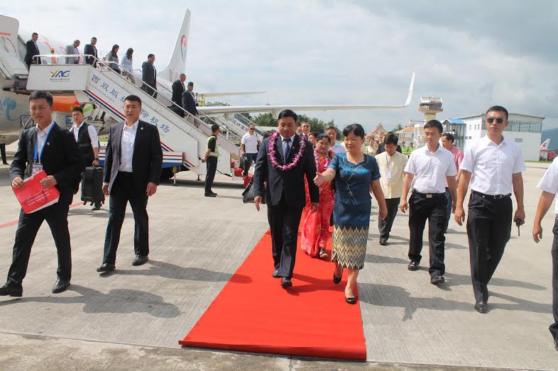 मंगलबार विहान चाइना ईस्टर्नको उडानबाट कुन्मिङबाट शी श्वाङ पान्नाको चोङ होङ कासा अन्तर्राष्ट्रिय विमान स्थलमा ओर्लादा उनलाई शी श्वाङ पान्ना स्वशासित क्षेत्रका उपगभर्नरले स्वागत गरेका थिए ।