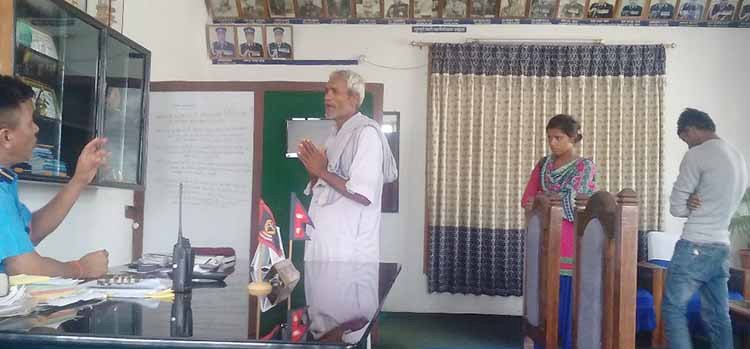 \"Juttaपर्सा । छोराले अन्तरजातिय बिबाहा गरेको भन्दै गाँउका मुखिया एवम् पूर्व गाविस अध्यक्षसहितका अगुवाहरुले बाबुलाई जुत्ताको माला लगाएर गाँउ घुमाएका छन् ।