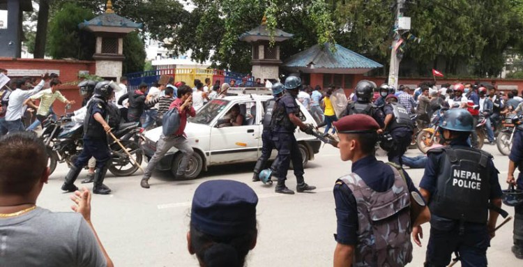 \"nebisangh_julus_jhadap\" काठमाडौं, ३० साउन । नेपाली कांग्रेसको भातृ संगठन नेपाल विद्यार्थी संघको महाधिवेशन खलबलिएको छ । साउन २३ गते उद्घाटन भइ आजसम्म पनि महाधिवेशनको बन्दसत्र शुरु नभइ अन्ततः बन्दसत्र नै शुरु नहुने अवस्थामा पुगेको छ । पार्टी नेताहरुको गुटबन्दीसँगै विद्यार्थीहरुमा भएको गुटबन्दीले नेविसंघ नै धरापमा परेको छ । नेताहरुकै कारण झण्डै दश वर्षदेखि महाधिवेशन हुन नसकेको आरोप लगाएका विद्यार्थीहरु नेताहरु महाधिवेशन शुरु भइसक्दा प्रतिनिधिको किचलो झिकेर संगठन नै विघटन गर्ने अवस्थामा पुर्याएको भन्दै गुटबाहिरका विद्यार्थीहरुले आलोचना गर्न थालेका छन् । एक हप्ता भन्दा बढी समयको रस्साकस्सीपछि भागबण्डाकै आधारमा प्रतिनिधि नामावली प्रकाशित भएपछि पनि असन्तुष्टी झनै चुलिएको छ । पछिल्लो समय शेरबहादुर देउवा र रामचन्द्र पौडेल गुटबाट कृष्णप्रसा सिटौला गुटमा विस्तार भएको नेविसंघमा सिटौलालाई मनाउन खोज्दा पौडेल पक्ष बाउँटिएको छ । सिटौलालाई मनाउन भन्दै थप गरी प्रतिनिधि नामावली प्रकाशित भएपछि पार्टी सभापति देउवा पक्षले फर्जी मतदाता थप गरेको भन्दै पौडेल पक्षधरले निर्वाचनमै भाग नलिने जनाएको छ । आफू अनुकुल फर्जी मतदाता थप गरेको भन्दै पौडेल पक्षधरले मतदाता नामावली नसच्याएसम्म निर्वाचनमा भाग नलिने जनाएको छ । सबैलाई समेट्ने भन्दै ३ हजार ७ सय ६० जना प्रतिनिधि चयन गरिएपछि पौडेल पक्ष रुष्ट भएको हो । यसअघि देउवा पौडेल पक्षको सहमतिमा २२ सय मतदाता नामावली तय गरिएको थियो । विवाद बढ्दै जाँदा निर्वाचन गराउने जिम्मेवारी पाएको निर्देशन समितिमै विभाजित भएको छ । समितिका सदस्य गोविन्द भट्टराई र गुरुराज घिमिरेलेले नामावली सच्चाउनुपर्ने बताएका छन् । २३ साउनमा उद्घाटन गरिएको नेविसंघको ११ औं महाधिवेशनमा गुटगत विवादले बन्दसत्र नै शुरु हुन नसकेपछि राजधानी बाहिरबाट आएका अधिकांश विद्यार्थी घर फर्किसकेका छन् ।
