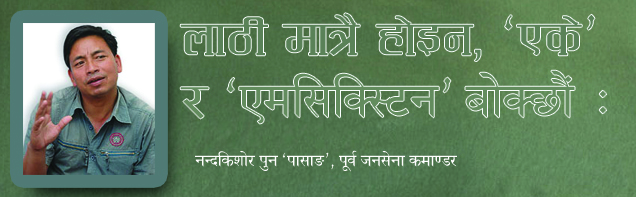 लाठी मात्रै होइन, ‘एके’ र ‘एम–सिक्स्टिन’ राइफल बाेक्छाैँ : पासाङ, पूर्व जनसेना कमान्डर