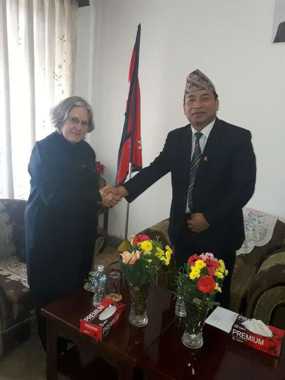 \"15003417_10209133404045516_889099321691258940_o-1-750\"काठमाडौं, २२ कात्तिक । उपराष्ट्रपति नन्दबहादुर पुन ‘पासाङ’सँग नेपालका लागि ब्राजिलका राजदूत मारिया मेस्क्वेटा पेसोअले शिष्टाचार भेट गरेकी छिन् । सोमबार अपरान्ह उपराष्ट्रपतिको कार्यालय, बहादुरभवन कान्तिपथमा उपराष्ट्रपतिसँग राजदूत पेसोअले शिष्टाचार भेट वार्ता गरेकी हुन् । भेटमा उपराष्ट्रपति पासाङले नेपाल र ब्राजिलबीच औपचारिक सम्बन्ध स्थापना भएको चार दशक पुगेको स्मरण गर्दै दुई देशबीचको सम्बन्ध प्रगाढ रहेको बताए । उनले नेपाल र ब्राजिलबीच औपचारिक सम्बन्ध सुरु हुनु अगावैदेखि कुटनीतिक सम्बन्ध रहेको बताए । नेपाल र ब्राजिलको भौगोलिक हिसाबले उस्ता उस्तै भएको बताउँदै उपराष्ट्रपतिले दुई देशबीच सांस्कृतिक र व्यापारिक सम्बन्ध रहेको स्मरण गराए । नेपाल र ब्राजिल दुवै देश जलस्रोतको धनी भएको बताउँदै उनले जलस्रोत सदुपयोगको तरिका ब्राजिलबाट सिक्न चाएको बताए । उनले संविधान जारी पछि नेपाल समृद्धिको दिशामा अगाडि बढेको जानकारी गराउँदै समृद्धिको पहिलो आधार जलस्रोत भएको बताए । भेटमा नेपालका लागि ब्राजिलका राजदूत मारिया मेस्क्वेटा पेसोअले ब्राजिल र नेपालबीचको सम्बन्ध घनिष्ठ रहेको बबताइन् । ब्राजिल नेपालसँगको सम्बन्धलाई थप सुधार्न चाहिरहेको उनले बताइन् । गतवर्ष नेपाल ब्राजिल चेम्बर अफ कमर्श स्थापना भएको स्मरण गराउँदै उनले आफूले दुई देशबीचको सम्बन्ध थप प्रगाढ बनाउनका लागि सबै प्रयास गर्ने बताइन् । यसैगरी उपराष्ट्रपति पासाङसँग नेपालका लागि ईण्डोनेशियाका अवैतनिक दूत चन्द्र ढकालले पनि सोमबार भेटवार्ता गरेका छन् ।