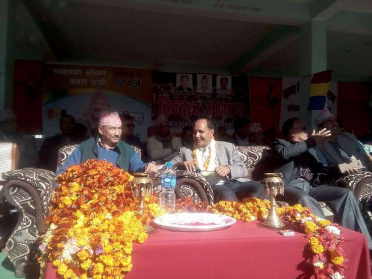 \"kamal-thapa-750\"सल्यान, २६ कात्तिक । राप्रपा नेपालका अध्यक्ष कमल थापाले माओवादी केन्द्र र एमालेले अख्तियार निलम्बित प्रमुख लोकमान सिहं कार्कीमाथि छापामार शैलीमा महाअभियोग लगाइएको बताएका छन् । अन्य राजनीतिक दलहरुसँग कुनै छलफल नै नगरी रातारात अख्तियार प्रमुखमाथि महाअभियोग लगाइएकाले ससंदबाट पास हुनेमा आशंका व्यक्त गरे । श्रीनगरमा आज भएको हिदुत्व जागरण सभालाई सम्बोधन गर्दै अध्यक्ष थापाले कार्कीमाथी लगाइएको महाअभियोगका सम्वन्धमा पार्टीभित्र छलफल चलाएरमात्र आधिकारिक धारणा सार्वजनिक गर्ने बताए । राजनीतिक स्वार्थका लागि अभियोग लगाउन खोजिएको भन्दै उनले भने, ‘दलहरुसँग कुनै छलफल नगर्नुले राजनीतिक स्वार्थ पुरा गर्नका लागि महाअभियोग आएको हामीलाई अनुभुति भईरहेको छ यसर्थ संसदमा यो विषय विवादित बन्न पुगेको छ ।’ संविधान कार्यन्वयन गर्नु सबै राजनीतिक दलहरुको मुख्य कार्यभार भएको बताउदै थापाले संविधान कार्यन्वयनको पहिलो खुटकिलो माघ ७ मा तीनै तह (स्थानीय, प्रदेश, प्रतिनिधि) को निर्वाचन हुनुपर्ने बताए । मधेसी दलहरुले उठाएका जायज माग संम्बोधन नगरे संविधान कार्यन्वयनमा जटिलता आउने उनको भनाई छ । ‘मधेसमा भएको आन्दोलन सकिएको होइन मत्थर मात्र भएको हो उनिहरुका जायजमागहरु संवोधन गरी संविधान कार्यन्वयनमा जानु पर्छ ।’ उनले भने । अंगिकृत नागरिकता प्राप्त गर्ने व्यक्ती राष्टको कुनै पनि मुख्य पदमा आउने गरी हुने संविधान संशोधन आफनो पार्टीलाई मान्य नहुने उनले बताए । थापाले अब हुने संविधान संशोधनमा धर्म निरपेक्षताको खारेजी गर्दैै हिन्दु राज्य घोषणा गर्नुपर्ने राप्रपा नेपालको शर्त रहेको वताए ।