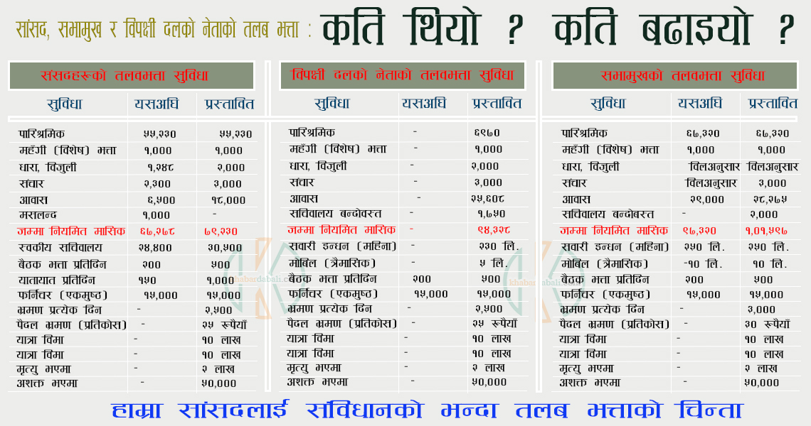 सांसदलाई संविधानको भन्दा तलबभत्ताको चिन्ता : कसको कति बढाइयो ?