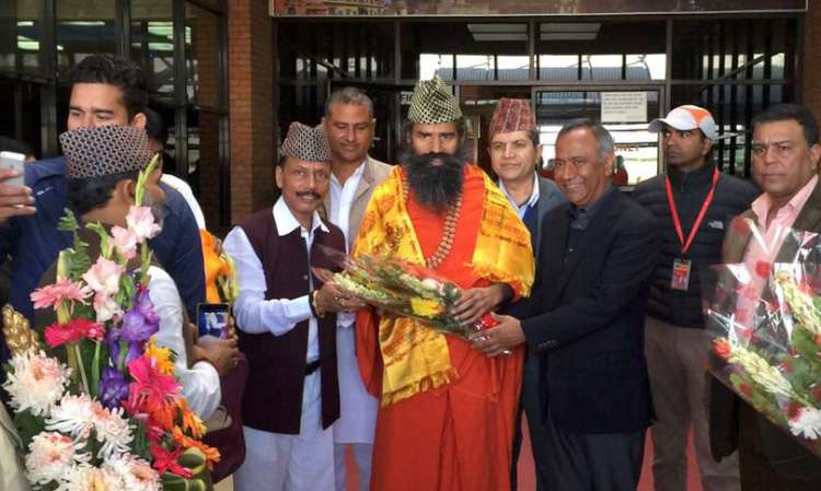 \"ramdev-ktm-750\"काठमाडौं, ७ मंसिर । भारतीय चर्चित योग गुरु रामदेवलाई काठमाडौं अाएका छन् ।  वीरगन्जको योग शिविर सन्चालन गर्न रामदेव  नेपाल आएका हुन । रामदेवलाई  स्वागत गर्न गैर आवासीय नेपाली संघका पूर्व अध्यक्ष उपेन्द्र महतो, पन्तजली योगपीठ नेपालका शालिग्राम सिंह लगायतले विमानस्थलमा पुगेर स्वागत गरेका थिए । रामदेवलाई नेपाली पन झल्काउन ढाका टोपी र बुद्धमार्गीहरुको पवित्र खतक पहेलो खादा लगाइदिएका थिए । ढाका टोपी र खादा लगाएको फोटो ट्वीटरमा पोष्ट गर्दै योग गुरु रामदेवले आफू माता सीता र गौतम बुद्धको पवित्र धार्मिक भूमिमा योगाका लागि पुगेको जनाएका छन् । उनी यसअघि २०७२ वैशाखमा काठमाडौंमा योग शिविर सञ्चालन गर्न आएका थिए ।