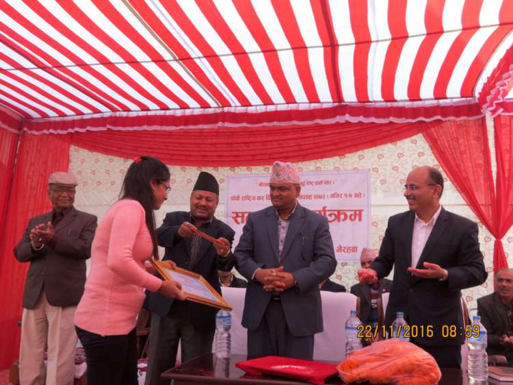 \"tax-wekly-750\" भैरहवा, ७ मंसिर । विभिन्न कार्यक्रमसहित रुपन्देहीमा कर सप्ताह सम्पन्न भएको छ । आन्तरिक राजस्व कार्यलय भैरहवाको आयोजना तथा विभिन्न संघसंस्थाको सहजीकरणमा कर सचेतनामूलक कार्यक्रम मंगलवार सम्पन्न भएको हो । गौरबका साथ तिरौं कर, समृद्ध राष्ट्र हाम्रो रहर भन्ने मूल नाराका साथ सम्पन्न उक्त साताब्यापी कर सप्ताह अन्र्तगत आयोजित कार्यक्रमका सहभागीलाई सम्मान समेत गरिएको थियो । कर सप्ताह समापन कार्यक्रममा वोल्दै अर्थमन्त्रालयका सहसचिव रामशरण पुडासैनिले आधुनिक करप्रणालीको विकाससंगै मुलुकमा करको दायरा बढेको भएतापनि अहिले पनि ४० प्रतिशत व्यवसाय विना दर्ता सन्चालनमा आएको बताए । पुडासैनिले भने ‘हाम्रो चु्नौति भनेको दर्ता नभएकालाई तत्काल दर्ता गरी करको दायरमा ल्याउनुपर्छ । दोस्रो पुजिगत खर्चलाई समयमा खर्च गर्ने वातवरण बनाउनुपर्छ । ‘ रुपन्देहीका प्रमुख जिल्ला अधिकारी विष्ण् प्रसाद ढकालले कर प्रणालीलाई सहज र सरल बनाउदै बढी भन्दा बढी जनताको पहूंचमा पुराउनुपर्ने आजको आवश्यक्ता भएको बताए । उक्त कार्यक्रममा आन्तरिक राजस्व कार्यलय भैरहवाका प्रमुख महाराज कोइरालाले भन्नुभयो‘ हिजोको कर प्रसाशन अन्र्तमूखी थियो । आजको बर्हिमुखी छ । हिजोको नियन्त्रणमुखि थियो आजको सहयोगी छ ।‘ उत्कृष्टलाई सम्मान कर असुलीमा सहयोग पुरायाई राजश्व प्रशासनलाई चुस्त राख्न भुमिका खेलेको भन्दै कर सप्ताहको अवसरमा अन्तरीक राजश्व कार्यालय भैरहवाले विभिन्न कर्मचारी, करदाता, साहित्यकार र खेलाडीलाई सम्मान गरेको छ । उक्त कार्यक्रममा आव ०७१।०७२ मा सबै भन्दा बढी आयकर दाखिला गर्ने करदाता पुर्णिमा विकास बैंक लिमिटेड भैरहवा र नवलपरासीको नागिन खाद्य उद्योगलाई सम्मान गरिएको थियो । उत्कृष्ट कार्य सम्पदान गरेको भन्दै कार्र्यालयले तेज बहादुर क्षेत्रीलाई नगद सहित सम्मान गरेको छ । क्षेत्री आन्तरीक राजश्व कार्यालय भैरहवा कार्यालय सहयोगी हुनुहुन्छ । त्यस्तै कर सचेतनामुलक कविता प्रतियोगितामा प्रथम हुने कवि अनमोल शर्मा, द्धतिय नरेन्द्र भण्डारी, तृतीय छवि ज्ञवाली र सान्तवना भएकी विन्दु खराललाई समेत नगद सहित सम्मान गरिएको छ ।