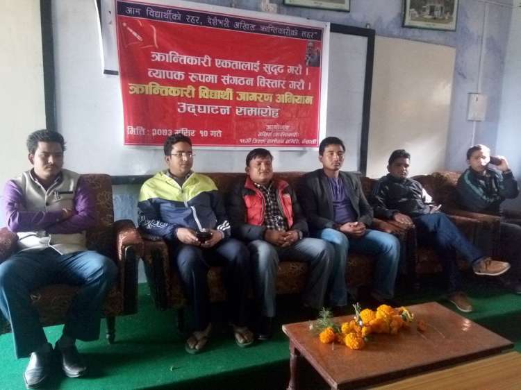 \"student-750\"धनगढी, ११ मंसिर । डेढ महिने क्रान्तिकारी विद्यार्थी जागरण अभियानको क्रममा कैलाली पुगेका अखिल(क्रान्तिकारी)का उपाध्यक्ष रञ्जित तामाङले आउँदो चुनावमा मधेसवाट नेकपा एमाले बढारिने बताएका छन् \'मुलुकका एकतिहाई भन्दा बढि जनसंख्या ओगट्ने मधेसी नेपालीलाई बिहार र युपि जाऊ भन्ने एमाले कसरी राष्ट्रवादी हुन सक्छ ?\' भन्ने प्रश्न गर्दै विद्यार्थी नेता तामाङले थपे-\'ओलीको पाराले नेपालको राष्ट्रियता कहिल्यै बलियो हुन सक्दैन।\' यसको राम्रो जवाफ आउँदो चुनाव मधेसका जनताले दिने तामाङले जिकिर गरे। कैलाली बहुमुखी क्याम्पसमा आयोजित कार्यक्रममा बोल्दै अखिल (क्रान्तिकारी)का प्रवक्ता सुरेन्द्र बस्नेतले भने-\'हिमाल, पहाड र तराई जोड्ने राष्ट्रवाद मात्र सहि राष्ट्रवाद हो। \'कार्यक्रममा अखिल(क्रान्तिकारी)का सचिव उद्धव भट्टराई, ७ नं.प्रदेशका सहसंयोजक रमेश भट्टराई लगायतको सहभागिता थियोे ।