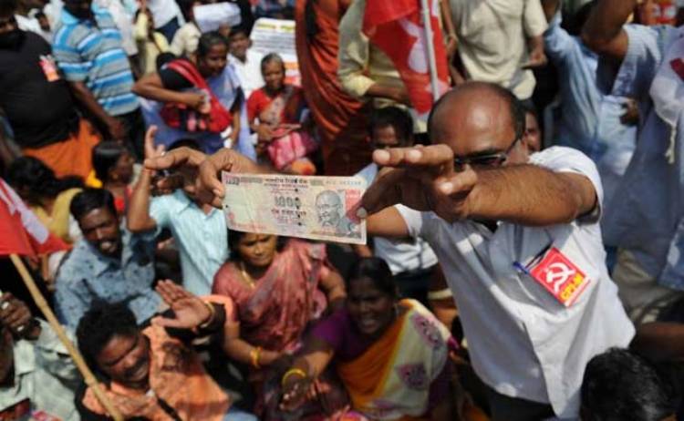 \"left-notes-ban-protest-afp\" काठमाडौ, १३ मंसिर । भारत सरकारले कालोधन निरुत्साहित गर्न भन्दै पाँच सय र एक हजारको नोट प्रतिबन्ध लगाएपछि आन्दोलन चर्किएको छ । संसदमा बबण्डर मच्चाएका विपक्षी दलहरुले सोमबार सिंगो भारत बन्द आह्वान गरेका छन् । बाममोर्चाको आह्वानमा भएको बन्दले विभिन्न प्रदेशहरु ठप्प छन् । बाममोर्चाको कार्यकर्ता मात्र नभइ सरकारले गरेको नोटबन्दीको विरोध गर्दै सर्वसाधारण नागरिक पनि प्रदर्शनमा उत्रिएका छन् । भारत विभिन्न प्रदेशहरु बेला बेलामा बन्द आह्वान गर्ने गरिएपछि सोमबारको बन्द आह्वानले भारतभर जनजीवन प्रभावित भएको छ । नोटबन्दीको विरोधमा एक हप्तासम्म संसदमा हंगामा मच्चाएका विपक्षीले सोमवार देशब्यापी विरोध प्रदर्शन गरेका हुन् । बाममोर्चाले केरल, बंगाल तथा त्रिपुरामा बन्द आह्वान गरेको छ । तीन राज्यमा बाम पार्टीहरुको जनाधार राम्रो छ । कांग्रेस आई, तृणमुल तथा आमआद्मी पार्टी पनि नोटबन्दीको विपक्षमा छन् । कांग्रेसले विरोध स्वरुप जनआक्रोश दिवसका रुपमा मनाउने घोषणा गरेको छ । तृणमुल कांग्रेस प्रमुख तथा पश्चिम बंगालकी मुख्यमन्त्री ममता बनर्जीले नोटबन्दीको विरोधमा कोलकातामा मार्च निकालेकी छन् । बनर्जीको अगुवाइमा भएको प्रदर्शनमा लाखौं नागरिक सहभागी छन् । आम आद्मी पार्टीले राजधानी दिल्लीकाो सेन्ट्रल पार्कमा विरोध प्रदर्शन गर्दैछ । विहारका मुख्यमन्त्री नीतीशकुमारको पार्टी जेडीयू भने विरोध प्रदर्शनमा सहभागी भएको छैन । उसले नोटबन्दीको समर्थन गरेको छ ।