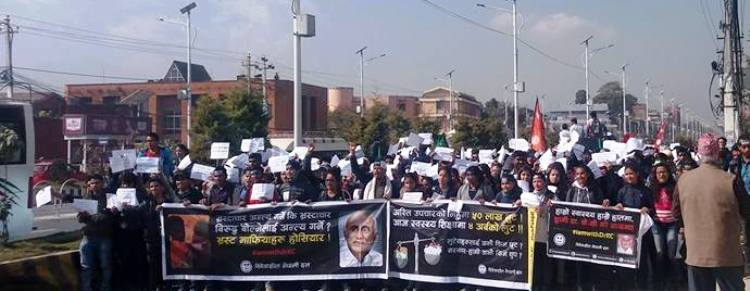 \"dr-kc\"काठमाडौं,१६ मंसिर । चिकित्सा क्षेत्रको सुधारको माग राख्दै १० औ पटक अनसनमा बसेका डा गोबिन्द केसिको मागमा एक्यवद्धता गर्दै माइतिघर मण्डलामा विभिन्न संघ संगठनहरुले र्याली प्रदर्शन गरेका छन । १० औं पटकको अनसनमा बसेका डा केसीको स्वास्थ्य अवस्था गम्भीर भएको भन्दै उनको स्वाथ्य प्रति चिन्ता गर्दै विभिन्न संग संगठनहरुले राज्यलाई सचेत गराउनका लागि त्यो कार्यक्रम आयोजना गरिएको बताइएको छ । डा केसीको स्वास्थ्य अवस्थाको चिन्ता गर्दै नयाँ शक्ति विद्यार्थी युनियन , राष्ट्रिय युवा अभियान, विवेकशील नेपाली र विभिन्न पेशागत संघ संगठन्हरुले एक्यवद्धता जनाउदै माइतिघर मन्डलादेखि नयाँबानेश्वर सम्म रयाली प्रदर्शन गरेका छन ।