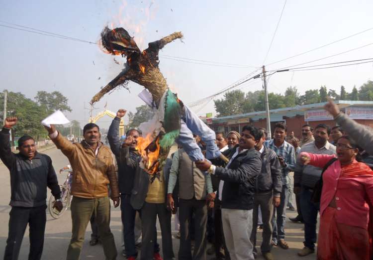 एमालेको विरोधमा सत्तापक्षको आन्दोलनः केपी ओलीको पुत्ला दहन