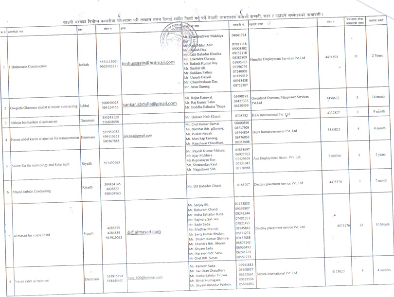 काठमाण्डौं, ६ पुस । नेपाल सरकारले २६ नेपाली म्यानपावर कमपनीलाई कालोसुचिमा राखेको छ । नेपाली कामदारलाई समयमै तलव भुक्तानी नगर्ने, कामदार अलपत्र पर्ने क्रम झन बढ्दै गएपछि श्रम तथा रोजगार मन्त्रालयले साउदीमा नेपाली कामदारले बढी दुःख पाएका कम्पनीहरुलाई कालो सूचीमा राखेको जनाएको छ । कालोसूचीमा परेका कम्पनीमा नेपाली म्यानपावरले कामदार पठाउन पाउने छैनन् । अहिले सबैभन्दा धेरै कालोसूचीमा मलेसियाका कम्पनीहरु छन् । यसअघि साउदीका २ वटा कम्पनीमात्रै यो सूचीमा थिए । अब यो संख्या २८ पुगेको छ । अहिले साउदीका खराब कम्पनीमा कार्यरत १ हजारभन्दा बढी नेपाली कामदार अलपत्र छन् । \"\" \"\" \"\" \"\"
