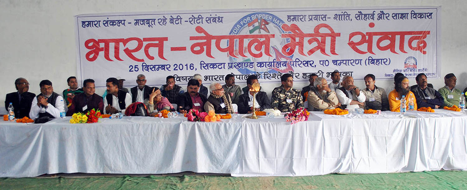 \"\" पर्सा, १० पुस । नेपाल र भारत दुवै सार्वभौम मुलुक भएकाले कसैले कसैमाथि हस्तक्षेप गर्न नमिल्ने दुवै देशका सांसदले बताएका छन् । मिडिया फोर बोर्डर हारमोनी भारतले आज पर्साको सीमावर्ती भारतीय सहर सिक्टामा आयोजना गरेको अन्तरक्रिया कार्यक्रममा उनीहरुले एउटै स्वरमा भने,  “नेपाल र भारतबीच शताब्दीऔं देखिको मैत्रीपूर्ण सम्बन्ध भएका कारण एकले अर्कालाई सल्लाह सुझाव दिन सकिन्छ तर मुलुकको आन्तरिक मामिलामा कसैले हस्तक्षेप गर्न मिल्दैन् ।” सो अबसरमा भारतीय राष्ट्रिय जनता दलका केन्द्रीय उपाध्यक्ष एवम् पूर्वकेन्द्रीयमन्त्री डा. रघुवंशप्रसाद सिंहले नेपालको संविधानलाई सर्वस्वीकार्य बनाउनका लागि सबै नेपालीको अधिकारलाई संविधानमा समावेश गर्न जरुरी रहेको बताए । सर्वस्वीकार्य संविधान बनेपछि मात्र नेपालमा स्थायित्व, विकास र समृद्धि आउने बताउँदै उनले भने, “ असल छिमेकी मित्र राष्ट्रको हैसियतले भारत सधैँ नेपालको आर्थिक विकास र समृद्धि चाहेको छ ।” सङ्घीय समाजवादी फोरम नेपालका राष्ट्रिय उपाध्यक्ष एवम् सांसद लालबाबु राउत गद्दीले नेपालमा मधेसी जनता उपेक्षित रहेको उल्लेख गर्दै अधिकार प्राप्तिको आन्दोलनमा सहयोग गर्न सबैसंग आग्रह गरे । भारत विहार बालमीकि नगर क्षेत्रका सांसद सतिस दुवे र वेतिया क्षेत्रका सांसद सञ्जय जैसवाल, भारतीय पूर्वसांसद रेणु देवी र सञ्जय पासवान तथा तमलोपाका महासचिव जितेन्द्र सोनललगायतले नेपाल–भारतबीचको द्विपक्षीय सम्बन्धलाई अगामी दिनमा अझ प्रगाढ र सुमधुर बनाउनु पर्ने धारणा व्यक्त गरे ।