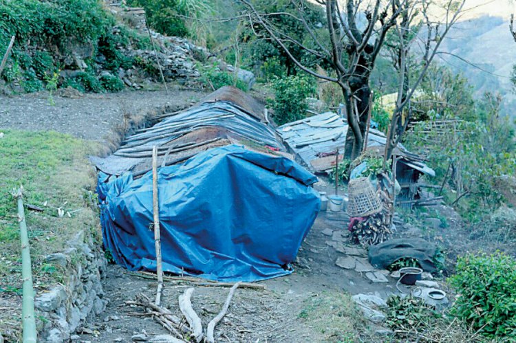 \"\"दोलखा, २३ पुस । जस्ता र चित्रोले बारेको छाप्रो अघिल्तिर ५५ वर्षीया भीमकुमारी सिवाकोटी भाँडा माझ्दै थिइन् । भूकम्पमा लडेको उनको घरको अवस्था अहिले पनि उस्तै छ । भूकम्पमा उनका एक हल गोरु र बोका मरे । आजको नयाँ पत्रिकामा खबर छ– सरकारले पीडितका लागि अनुदानस्वरूप बाँडेको ५० हजार रुपैयाँ उनले दसैँअघि नै पाइन् । तर, अझै घरको जग खार्न सकेकी छैनन् । काम गर्ने मजदुर नभेटेपछि उनले घर बनाउन चासो नदिएकी हुन् । मजदुरको ज्यालै महँगो बाथरोगले थलिएको पोखराबारी गाउँका ५० वर्षीय लेखनाथ सिवाकोटी जस्ताको छाप्रो छेउमै बसेर घाम तापिरहेका थिए । उनी पनि घरबारविहीन हुन् । उनले ५० हजार रुपैयाँ पाइसके, तर मजदुरको अभावमा उनले घर बनाउन सकेका छैनन् । ‘सरकारले दिने ५० हजार रुपैयाँ पाएँ । तर, घर बनाउन गाउँमा मान्छे नै भेटिन्न, रोगी छु । भेटिएका मजदुरले ज्याला महँगो भन्छन् । सरकारले दिएको अनुदानले पुग्दैन । त्यसैले छाप्रोमै बस्दै आएको छु,’ उनले भने । पैसाले मात्रै घर बन्दैन पोखराबारीकै ४५ वर्षीया निर्मला त्रिपाठीको दुईवटा घर भूकम्पमा ध्वस्त भयो । उनी अहिले जस्ताको टहरोमै बस्दै आएकी छिन् । सरकारले बाँडेको ५० हजार रुपैयाँ उनले दसैँअघि नै पाइन् । तर, घरको जग खार्न सकेकी छैनन् । गाउँमा मजदुर नभेटेपछि उनले घरको जग खार्न नसकेकी हुन् । ‘घर बनाउन सकिएको छैन । पैसाले मात्रै घर नबन्ने रहेछ । गाउँमा मजदुर भेटिन्नन्, भेटिएकाले ज्याला महँगो भन्छन् । त्यसो हुँदा जाडो सहेर छाप्रोमै बस्नु परे जस्ताकै टहरोमा समय बित्ने चिन्ता गाउँका सबै युवा विदेश लापिलाङ–९ पाटागाउँकी ८५ वर्षीया भीमकुमारी बस्नेत चित्रोले बारेको गोठमा आगो फुक्दै गरेको अवस्थामा भेटिइन् । भूकम्पले उनको तीनतले घर ढाल्यो । उनी अहिले गोठमा बस्दै आएकी छिन् । तर, गोठमा जाडो छेक्ने कुनै छेकवार छैन । जाडोले उनको हातखुट्टा पटपटी फुटेका छन् । अँगेनामा दाउरा ठोस्दै उनले भनिन्, ‘भूकम्पले घर ढालेपछि जस्ताको टहरासमेत हाल्न सकिनँ । यही गोठमा बसेकी छु । आगो तापेरै रात बित्छ ।’ सरकारले दिने अनुदान रकम उनले अझै पाएकी छैनन् । ‘सरकारले दिने ५० हजार रुपैयाँ पनि पाइनँ । केले घर बनाउने ? जस्ताकै टहरोमा अब जुनी बित्ने भयो,’ उनले भनिन् । गाउँका सबै युवा विदेश लापिलाङ–५ गोदाङका ८८ वर्षीय कर्णबहादुर थामी चित्रोले छाएको गोठमा भेटिए । सँगै उनकी श्रीमती गहुँ निफन्दै थिइन् । जाडोले कठ्यांग्रिएका उनको पनि तीनतले घर भूकम्पमा ढल्यो । उनी यही चित्रोले बारेको गोठमा बस्दै आएका छन् । जाडोमा ओढ्ने तातो लुगा छैनन् । अनुदानको ५० हजार रुपैयाँ उनले दसैँअघि नै पाए । तर, घर बनाउन सकेका छैनन् । गाउँमा घर बनाउने मजदुर नभेटेपछि उनको घर बनाउने योजना लम्बिएको हो । ‘भूकम्