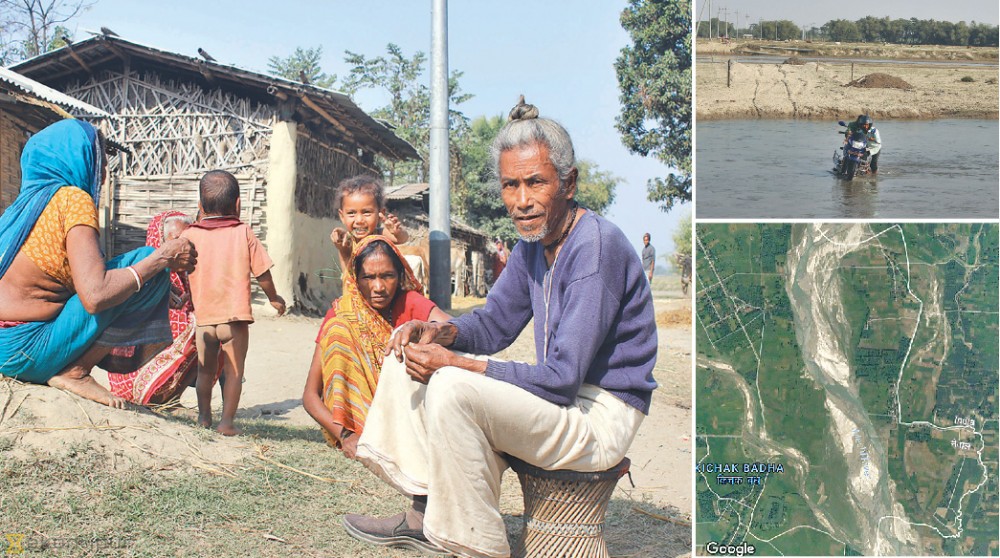 \"\"झापा, २७ पुस । नेपालको भौगोलिक सिमाना पूर्वमा मेचीसम्म मात्रै छैन । झापाका महेशपुर र ज्यामिरगढी गाविसका केही वडा मेचीपारि छन् । तर त्यहाँका बासिन्दा सोध्छन्, ‘देश त छ तर खोइ सरकार ?’ आजको कान्तिपुर दैनिकमा खबर छ–साविकको महेशपुर–२ (हाल भद्रपुर–१) डोलोबस्ती र ज्यामिरगढी–२ ग्वालबस्ती मेचीपारि पर्छन् । डोलोबस्तीका करिब १ सय ४२ घरधुरी र ज्यामिरगढीका पनि त्यही हाराहारीका बासिन्दा वर्षौंदेखि सरकारी सेवासुविधाबाट वञ्चित छन् । उनीहरूसँग नेपाली नागरिकताबाहेक अरू कुनै सरकारी सुविधा छैन । ‘बिजुली, पानी, सडक, औषधोपचार केही छैन,’ डोलोबस्तीका ८५ वर्षीय जीवन राजवंशीले भने, ‘मेचीपारि पनि नेपाल छ भन्ने सरकारलाई पत्तै छैन ।’ यो बस्तीमा उनको चौथो पुस्ता बित्न लाग्यो । पूर्वाधारैबिनै वर्ष दिनअघि महेशपुर गाविस भद्रपुर नगरपालिकामा गाभियो । स्थानीयले नगरपालिका भएपछि सुविधा पाइएला भन्ने अपेक्षा गरे । तर, त्यो अपेक्षा पूरा भएको छैन । ‘बिजुलीका पोल गाडेको २ वर्ष बित्यो,’ नरमाया राजवंशीले सुनाइन्, ‘अहँ बिजुली आएन ।’ केही पोल बाढीले बगाइसकेको छ । मेची नदीमा पुल नभएकाले वर्षायाममा स्थानीय गाउँमै बन्धक बन्छन् । बारम्बारको आग्रहपछि झोलुंगे पुल निर्माणका लागि ठेक्का लागेको पनि दुई वर्ष बित्यो तर ठेकेदार कम्पनीले अहिलेसम्म सिन्को भाँचेको छैन । १८ महिनाभित्र काम सक्ने कम्पनीको सर्त थियो । ‘पुल बन्छ भन्छन्, कहिले हो थाहा छैन,’ नरमायाले सुनाइन् । पुल नहुँदा अहिले पनि मेची तर्न स्थानीयलाई सास्ती छ । यहाँका बासिन्दा सम्पूर्ण कुरामा भारतको भरमा छन् । डोलोबस्ती बंगालको खोरीबारी र विहारको पुर्निया जिल्लाअन्तर्गतको नेमुगुढीसँग जोडिन्छ । भद्रपुर बजारभन्दा ठाकुरगन्ज पुग्न उनीहरूलाई सहज छ । डोलो गाउँका पूर्ववडा अध्यक्ष जितलाल राजवंशीले मेचीपारि सरकारको उपस्थिति शून्य रहेको बताए । ‘यो क्षेत्रले कहिल्यै राज्यको सुविधा पाउन सकेन,’ जितलालले भने, ‘राज्यले सधैं पराई सम्झियो हामीलाई ।’ डोला गाउँमा २०४४ सालतिरै स्कुल स्थापना भएको हो । अहिले भव्य पक्की भवनमा छ मेची निमावि । कक्षा ७ सम्म पढाइ हुन्छ । आगामी शैक्षिक सत्रदेखि ८ सम्म पढाइ हुने आश्वासन पाएका छन् गाउँलेले । तर, विद्यालयको पढाइप्रति स्थानीय सन्तुष्ट देखिन्नन् । आठ जना शिक्षक छन् । वर्षामा उनीहरू मेची तरेर आउन नसक्दा पढाइ ठप्प हुन्छ । ‘हामी सीमारक्षक’ २०२० सालताका मेची नदी बगेको स्थान अहिले भारतीय भूभागमा छ । ०२२ सालतिर नदीले धार फेरेपछि भारतले कब्जा गरेको त्यो ठाउँ नेपालकै रहेको बताउँछन् स्थानीय जगेश्वर महतो । ‘हामी बसेका छौं र भारतले थप अतिक्रमण गर्न सकेको छैन,’ ६४ वर्षीय महतो भन्छन्, ‘हामी त सीमारक्षक हौं । यो