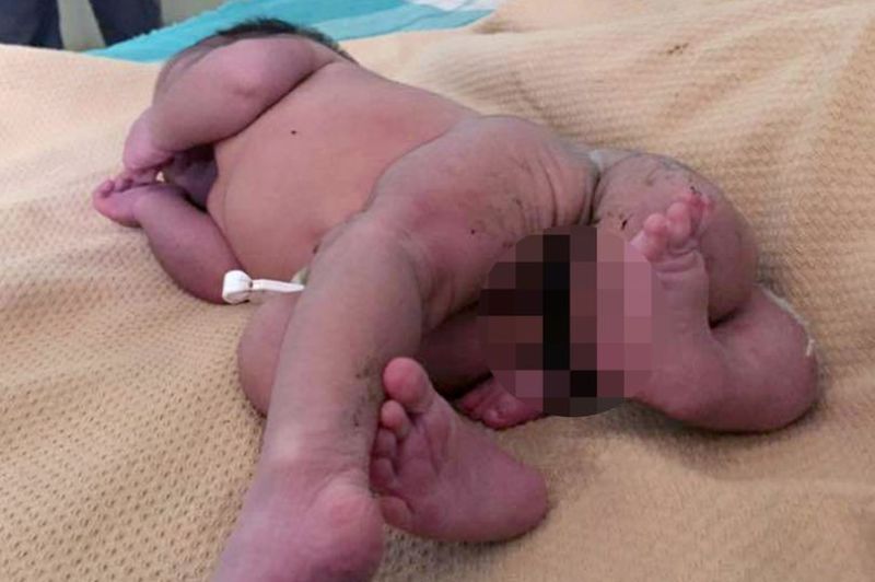 यस्तो विचित्रको शिशुको जन्म जसको चार खुट्टा र दुई जनन्द्रीय अंग छन्