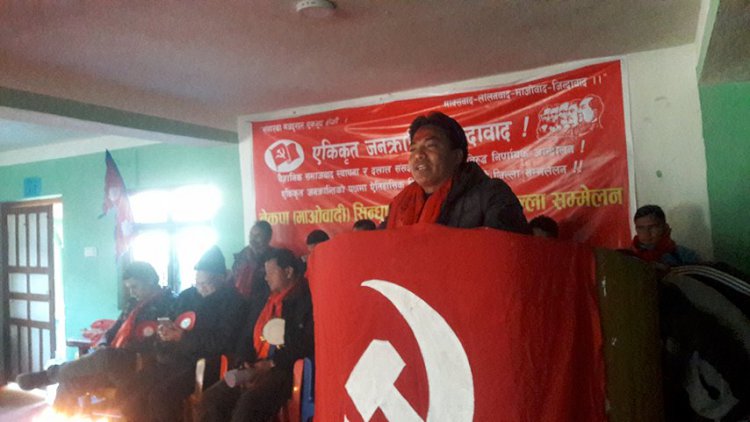 [caption id=\"attachment_113696\" align=\"alignnone\" width=\"750\"] नवनिर्वाचित सेक्रेटरी हिमाल मन्तव्य राख्दै[/caption] सिन्धुपाल्चोक, ७ माघ । गाउँ–गाउँमा जनसरकार सत्ता सञ्चालन गरेका नेत्र विक्रम चन्द नेतृत्वको नेकपा (माओवादी) सिन्धुपाल्चोकको पाँच औं जिल्ला सम्मेलन सकिएको छ । जिल्लाको मेलम्चीमा भएको सम्मेलनले चिरन तामाङ ‘हिमाल’को नेतृत्वमा २५ सदस्यीय कार्यसमिति चयन गरेको छ । बैज्ञानिक समाजवाद स्थापना र दलाल संसदीय व्यवस्थाको निर्णायक अान्दोलन, एकिकृत जनक्रान्तिको पक्षमा एेतिहासिक सिन्धुपाल्चोकको ५ औं जिल्ला सम्मेलन भन्ने मूल नाराका साथ सम्मेलन सकिएको थियो । फागुन १ गते हुने महाधिवेशनको लागि माअोवादीले गाउँ गाउँमा अधिबेशन धुमधामका साथ गरिरहेको छ । पार्टीका पोलिटब्युरो सदस्य रणबहादुर बमको प्रमुख आतिथ्यमा सम्मेलन भएको थियो । सेक्रेटरी हिमालका अनुसार यसअघि उक्त पार्टीले जिल्लाको चौतारा, बाह्रविसे, मेलम्ची र जलविरेलगायत ठाउँमा कार्यक्रम गरेको थियो । जनतालाई दुःख दिएर झुलाउने, घुस लिने, भूकम्प पीडितको नाममा करोडौं कुम्ल्याउने जिल्लाका संघसंस्थाहरुको पनि कारवाहिको लागि सूचि तयार गरेको बताइएको छ । उनीहरुलाई चाँडै कारवाहि गर्ने बताइएको छ । अबको अाफ्नो कार्यकालबारे हिमाल यसरी बताए । जनतालाई दुःख दिने सरकारी र गैरसरकारी संस्थालाई नछाड्ने योसंगै जिल्लामा रहेका भष्ट्र सरकारी कर्मचारी र भूकम्प पीडितहरुलाई झन पीडित बनाइरहेका गैरसरकारी संस्थाहरुलाई नछाड्ने सेक्रेटरी हिमालले खबरडबलीलाई बताएका छन् । जिल्लाका विकासे अड्डाहरुलाई जनतालाई दुःख दिइरहेको बताउँदै हिमालले खबरडबलीसंग भने ‘अब दुःख र सास्ती दिएका जिल्लाका सरकारी र गैरसकारी संस्थालाई ठेगान लगाइदिने चेतावनी दिए ।’ यसअघि जिल्ला कार्यक्रम सञ्चालन गरिरहेको अन्तराष्ट्रिय संस्था सेभ चिल्ड्रेनको गाडी उक्त पार्टीले पेट्रोल बम प्रहार गरेको थियो । भूकम्प पीडितको राहतमा अनियमितता गरेको भन्दै कारबाहि गरेको बताएको थियो । [caption id=\"attachment_113697\" align=\"alignnone\" width=\"750\"] नवनिर्वाचित जिल्ला कार्यसमिति[/caption] प्रभावितलाई लेबी नदिए राम्रो नहुने त्यस्तै नवनिर्वाचित सेक्रेटरी हिमालका अनुसार बहुचर्चित मेलम्ची खानेपानी आयोजनाले प्रभावित स्थानीयहरुलाई राज्यले अनिर्वाय रुपमा लेबी दिनुपर्ने बताएका छन् । लेबी नदिएर पानी लैजानु भनेको प्रभावित स्थानीयलार्इ अन्याय गर्नु हो उनले भने । अबैधानिक क्रसरमाथि निगरानी सिन्धुपाल्चोकमा सञ्चालित अबैधानिक क्रसरहरुको सूचि तयार पनि गरेको बताएका छन् । अबैध रुपमा सञ्चालन गरेर नदि नाला दोहन गरिरहेको क्रसहरुलाई पनि कारवाहिको सूचिमा राखेको हिमालले खबरडबलीलाई बताएका छन् । त्यस्तै सडक वरपरका घरहरु मुआब्जा नदिई भत