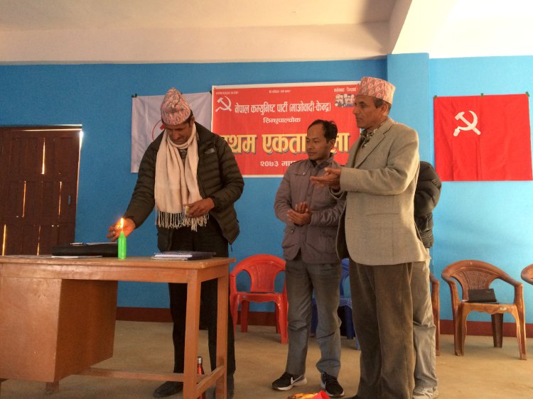 \"\"चैतारा , १२ माघ ।नेपाल कम्युनिष्ट पार्टी (माओवादी केन्द्र) का ७० जना केन्द्रीय नेताहरुले संयुक्त राजीनामा दिएका छन् । कृष्णप्रसाद सापकोटा, केशव नेपाल, दावा तामाङ, माधव सापकोटा, सरल सहयात्री पौडेल, राजकुमार श्रेष्ठ, युवराज दुलाल, अमृता नेपाल लगायत ७० नेताहरुले संयुक्त राजीनामा दिएका हुन् । माओवादी केन्द्र सिन्धुपाल्चोकले आज सदरमुकाम चौतारामा गरेको प्रथम एकता भेलामा जिल्लाबाट केन्द्रमा प्रतिनिधित्व गरेर गएका ७० जनाले संयुक्त राजीनामा दिएका हुन् । राजीनामा दिनेमा माओवादी केन्द्रका पोलिट्ब्युरो सदस्य देखि केन्द्रीय सदस्य समेत छन् । जिल्ला भेलामा विशेष प्रस्ताव राख्दै युवराज दुलालले पार्टीको केन्द्रीय समिति भद्दा भएको कारण त्यसलाई चुस्त बनाई प्रकृयाको आधारमा पार्टी निर्माणको बहस सिर्जना गर्न ७० जना केन्द्रमा रहेका नेताहरुले राजीनामा दिएको घोषणा गरे । उनले गरेको विशेष प्रस्तावलाई ७० जना केन्द्रमा रहेका नेताहरुले हस्ताक्षर गरी अनुमोदन गरेका छन् । सो राजीनामापत्रलाई तत्कालै केन्द्रमा पठाईने जनाईएको छ । पार्टीको पोलिटब्युरो सदस्य समेत रहेका कृष्णप्रसाद सापकोटाले माओेवादीलाई शसक्त र जुझारु बनाउन राजीनामा दिनुपरेको बताए । ‘हामी पद होईन पार्टी सुदृढ गर्न चाहान्छौं,’ उनले भने । ‘हामी केन्द्रीय समितिमा छौं, त्यो भद्दा र अर्थपूर्ण छैन’, माओवादी केन्द्रका जिल्ला संयोजक दावा तामाङले भने– ‘हामी जिल्लामानै रहेर पार्टी मजबुद बनाउन चाहान्छौं ।’ राजीनामा पछि पार्टीलाई अझ मजबुद् बनाउन आपूmहरु लाग्ने उनले बताए । राजीनामा दिएपनि पार्टीको जिम्मेवारीबाट बाहिर नजाने भन्दै उनले आपूmहरु चुनौतीसँग हार नमान्ने पनि बताए । केन्द्रीय समितिको बैठक बस्न पनि नसक्ने र महत्वपूर्ण निर्णय हुन नसक्ने भएकोले प्रकृयाको आधारमा पार्टी निर्माण गर्न राजीनामा दिएको माओवादी केन्द्रका जिल्ला सहसंयोजक माधव सापकोटाको तर्क छ । ‘प्रकृयाको आधारमा पार्टीं निर्माणको बहस गर्न राजीनामा दिएका हौं’, उनले भने– तर महत्वपूर्ण कुरा के हो भने हामी पार्टीको जिम्मेवारीबाट पन्छने छैनौं ।’ं पार्टी केन्द्र चुस्त बनाउन सहयोग गर्ने हेतुले राजीनामा गरिएको उनले प्रष्ट्याए । यता नेताहरुले केन्द्रीय समितिबाट राजीनामा दिएको घोषणा गरेलगत्तै कार्यकर्ताहरु भने खुसी भएका छन् । ‘पार्टीलाई सुदृढ बनाउन यो कदम अति आवश्यक थियो’, भेलामा उपस्थित नारायणप्रसाद तिमल्सिनाले भने– ‘अब पार्टी मजबुद बनाउँदै जनवादी अभ्यास गर्न जरुरी छ ।’ भेलामा जिल्लाभरका ३ सय बढी नेता कार्यकर्ताहरु उपस्थित थिए ।