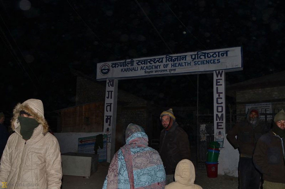 जुम्ला, १३ माघ । नौ महिनादेखि उपकुलपतिविहीन बनाइएको भन्दै कर्णाली स्वास्थ्य विज्ञान प्रतिष्ठान जुम्लाले उपकुलपति नियुक्त गर्न अझै ढिलाइ गरिए सेवा ठप्प गर्ने चेतावनी दिएको छ । प्रतिष्ठानका नर्सिङ डिन गायत्री राईको अध्यक्षतामा यहाँको मेडिकल डाइरेक्टर, चिकित्सक तथा कर्मचारी सहभागी बैठकले सेवा बन्द गर्ने चेतावनी दिएको हो । जुम्लामा बुधबार पत्रकारसम्मेलनको आयोजना गरी एक साताभित्र पदाधिकारी नियुक्त नगरिए प्रतिष्ठान केन्द्रीय कार्यालयको अस्पताल, प्रशासन, प्राज्ञिक, आर्थिक, शैक्षिक तथा दैनिक कार्यालय सञ्चालन ठप्प गर्ने कुरा सार्वजनिक गरिएको छ । प्रतिष्ठानका प्रशासकीय अधिकृत द्वन्द्वबहादुर शाहीले पत्रकारमाझ सेवा ठप्प गर्ने कुरा सार्वजनिक गरिएको र अपिलमार्फत सहकुलपतिलाई जानकारी गराइएको बताए। “गएको असोज १४ लिखित रुपमा कार्यवाहक उपकुलपतिको जिम्मा पाएका डा. धर्मराज श्रेष्ठ अधिकांश समय सम्पर्क कार्यालयमा बस्दै आएका छन्, प्रतिष्ठान विषम परिस्थितिमा पुग्दा पनि सरकारले पदाधिकारी नियुक्तिमा ध्यान दिएको छैन, यो प्रतिष्ठानलाई अपहेलना गरिएको छ, यदि यही अवस्थालाई कायम राखिए अस्पतालका सबै सेवा पूर्ण रुपले बन्द गर्छौं,” उनले भने । प्रतिष्ठानका हाडजोर्नी विशेषज्ञ डा. पुजन रोकायाले पदाधिकारी रिक्त हुँदा प्रतिष्ठानको सबै क्षेत्रमा अस्तव्यस्त भएको गुनासो गर्नुभयो । नेतृत्व गर्ने पदाधिकारी नभएपछि जनशक्तिको अभाव पनि हुँदै गएको डा रोकायाको भनाइ छ । यता डा सूर्यमान लिम्बूले उपकुलपति मात्र नभई रजिस्ट्रार र अस्पताल निर्देशक समेतका पदाधिकारी नहुँदा लामो समयदेखि कार्य परिषद्को बैठक बस्न नसकेको बताए । डा लिम्बूका अनुसार प्रतिष्ठानको परिचालन तथा व्यवस्थापनमा निकै ठूलो समस्या हुँदै गएको छ । पदाधिकारीविहीन हुँदा प्रतिष्ठानको तीन सय श्ययाको निर्माणाधीन भवनको कामको भुक्तानी दिन नसकिएको प्रतिष्ठानले जनाएको छ । मुलुकका अन्य प्रतिष्ठानमा पदाधिकारीविहीन हुने बित्तिकै तुरुन्तै सरकारी चासो हुने तर यहाँको प्रतिष्ठानमा नौ महिना पदाधिकारीविहीन हुँदा पनि सरकार उदासीन देखिएकामा कर्णालीवासीले आक्रोश पोख्दै आएका छन् ।