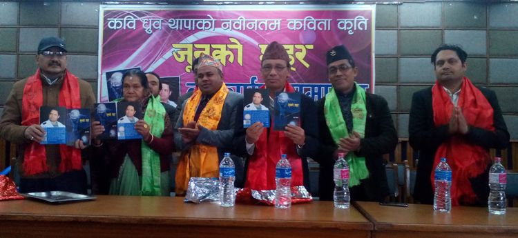 \"\" पोखरा, १५ माघ । कवि ध्रुव थापाको पहिलो कविता सङ्ग्रह ‘जूनको शहर’ शनिबार पोखरामा लोकार्पण गरिएको छ । नेपाल सङ्गीत तथा नाट्य प्रज्ञा प्रतिष्ठानका कुलपति सरुभक्त, कविकी आमा कलावती थापा र तीर्थहरि स्मृति प्रतिष्ठानका अध्यक्ष वीरेन्द्र पालिखले संयुक्त रुपमा कृतिको लोकार्पण गरेका हुन् । कार्यव्रmममा कुलपति सरुभक्तलेनेपाली साहित्यिक इतिहासको लेखाजोखा गर्दा डायस्पोरिक साहित्यको मूल्याङ्कन गर्न छुटाउन नहुने बताए । विगत एक दशकदेखि संयुक्त राज्य अमेरिकामा बस्दै आएका कवि थापाले पनि नेपाली साहित्यमा डायस्पोरिक लेखनमा राम्रो प्रभाव राख्न सक्ने उनले विश्वास व्यक्त गरे । उनले साहित्य वैश्विक सम्पत्ति र रोग प्रतिरोधात्मक औषधि भएकोमा जोड दिए । प्रकाशक अनुपम म्युजिक पोखराका प्रबन्ध निर्देशक अनुराग अधिकारीको अध्यक्षतामा भएको कार्यव्रmममा कृतिको समीक्षा गर्दै सम्मोहन साहित्यिक पत्रिकाका सम्पादक अल्पज्ञानीले जूनको शहरभित्र परिवर्तित समाज र समाजिक प्रतिबिम्बनहरु आएको बताए । विदेशमा बसेर नेपाली माटोप्रति गरिएको गहिरो प्रेम र आफूभित्र रहेको सिर्जना शक्तिलाई कवितामार्फत् उजागर गर्नु नै थापाको महत्वपूर्ण उपलब्धी भएको अल्पज्ञानीले बताए । कवि थापाले रङ्गमन्च हुँदै आफूले थालेको यात्रा कविता सङ्ग्रहसम्म आइपुगेको भन्दै भविष्यमा आफू उपन्यास प्रकाशन गर्ने सोचमा रहेको बताए । कार्यव्रmममा आँबु खैरेनी स्रष्टा समाजका अध्यक्ष अनिल श्रेष्ठ, प्रगतिशील लेखक सङ्घ, कास्कीका अध्यक्ष भीम रानाभाट, चलचित्रकर्मी माओत्से गुरुङ, फेवा विकास बैङ्कका कार्यकारी अधिकृत रेशमशहादुर थापा, कवि सुरज उपाध्याय, समाजसेवी कमलबहादुर थापा, कमला थापालगायतले शुभकामना दिएका थिए ।