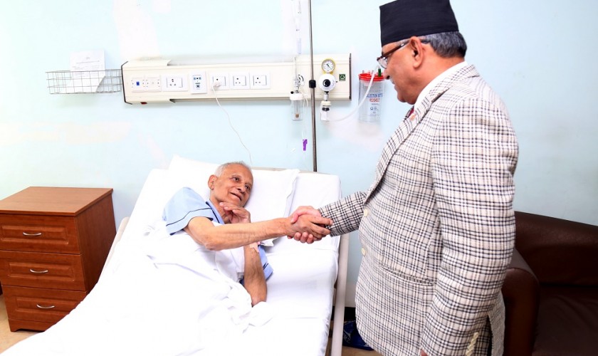 अर्ध भुमिगत नेता मोहनविक्रमलाई भेटन प्रचण्ड ग्राण्डी अस्पताल पुगे
