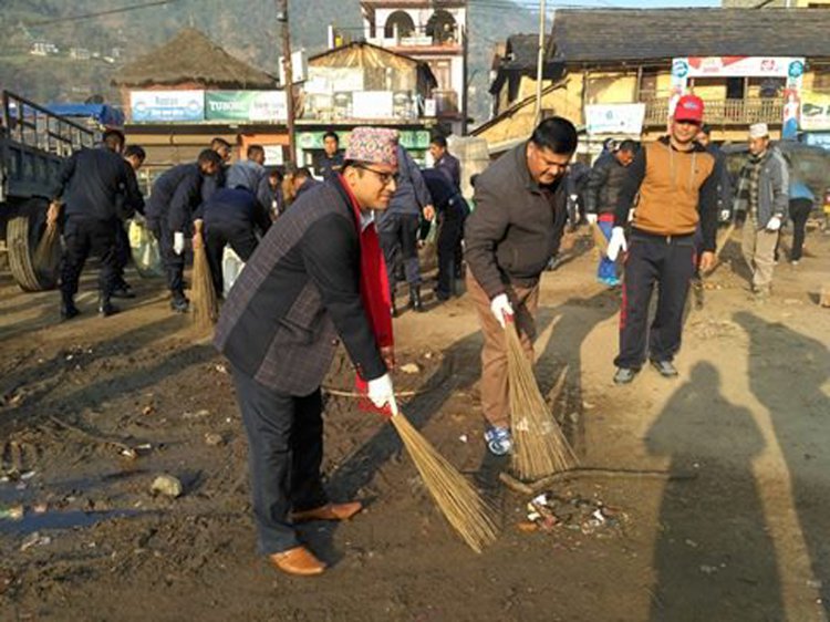 \"\"लिबाङ (रोल्पा), २१ माघ । आज एकाबिहानै रोल्पाका प्रमुख जिल्ला अधिकारी डा डिजन भट्टराईले झाडु लगाएपछि टुँडिखेलको मुहार फेरिएको छ । रोल्पा सदरमुकामको मुटु मानिएको टुँडिखेलमा थुपारिएका सुन्तलाका बोक्रासहितको सम्पूर्ण फोहर व्यवस्थापन गरिएको छ । यत्रतत्र छरिएका निर्माण सामग्री व्यवस्थित भएका छन् भने टुँडिखेलमा पार्किङ गरिएका यातायातका साधन पनि हटाइएको छ । घन्टौँ हिँडेर डोकोमा सुन्तला बेच्नकै लागि सदरमुकाम आएका टोलीलाई लाइन लगाएर व्यवसाय सञ्चालन गर्न निर्देशन दिइएको छ भने सुन्तलाका बोक्रा व्यवस्थितरुपले जम्मा गर्नका लागि डस्टबिनको व्यवस्था गरिएको छ । प्रजिअ डा भट्टराईले रबरका पञ्जा लगाएका हातले झाडु समाएर टुँडिखेल बडार्न थालेपछि स्थानीय विकास अधिकारी सुशील वैद्य, प्रहरी नायब उपरीक्षक रामप्रसाद घर्तीमगर, लिबाङ नगरपालिकाका कार्यकारी अधिकृत निमबहादुर केसी, जिल्ला विकास समितिका स्रोत व्यक्ति दामोदरप्रसाद सुवेदीसहित प्रहरीको ठूलो समूहले उनलाई साथ दिएको थियो । प्रहरी नायब उपरीक्षक घर्तीमगर भने हात हालेर नाला सफा गर्ने अभियानमा व्यस्त देखिन्थे। यसरी टुँडिखेल वरपरको सरसफाइ अभियान सकिएलगत्तै प्रजिअ डा भट्टराईले भने – “यदि हामी स्वच्छ र स्वस्थ्य समाजमा बस्न चाहन्छौँ भने हामीले हाम्रो फोहर व्यवस्थापन आफँै गरौँ । आफ्नो घर वरपरको फोहर व्यवस्थापनका लागि अरुको मुख नताकौँ । हाम्रो अभियान सफा रोल्पाको अभियान हो । आउनुस् यो अभियानमा तपार्इं हामी सबैसँगै हातेमालो गरेर अघि बढौँ ।” स्थानीय विकास अधिकारी सुशील वैद्यले जिल्लाको सरसफाइ अभियानमा कर्मचारी र प्रहरीको सक्रियताले मात्र पूर्णता पाउन नसक्ने हुँदा स्थानीयवासी पनि जुट्नुपर्नेमा जोड दिए । उनले नगरवासीलाई भने – “आउनुस् जिल्लाको सरसफाइ अभियानमा सँगै हातेमालो गरेर अघि बढौँ त्यसका लागि जिविसले जस्तोसुकै समन्वयकारी भूमिका निर्वाह गर्न तयार छ ।” यस्तै प्रहरी नायब उपरीक्षक रामप्रसाद घर्तीमगरले पनि गाउँ, टोल र समाजलाई सुन्दर अनि सफा बनाउने दायित्व सबैको हो भन्नका लागि प्रहरीले जनचेतना फैलाउँदै आएको हो, यसमा स्थानीयवासीले पनि साथ दिनुपर्छ, कर्मचारी त आज आउँछ भोलि जान्छ तर नगरवासी स्थायी रुपमा नगरमै बस्ने भएको हँुदा सरसफाइमा सबैको चासो र चिन्ता हुनुपर्नेमा जोड दिए । कर्मचारी र प्रहरीले थालेको सरसफाइ अभियानमा स्थानीयवासीको उपस्थिति नभए पनि बयोवृद्ध दुर्गाप्रसाद आचार्य भने उपस्थित भएका थिए । रासस