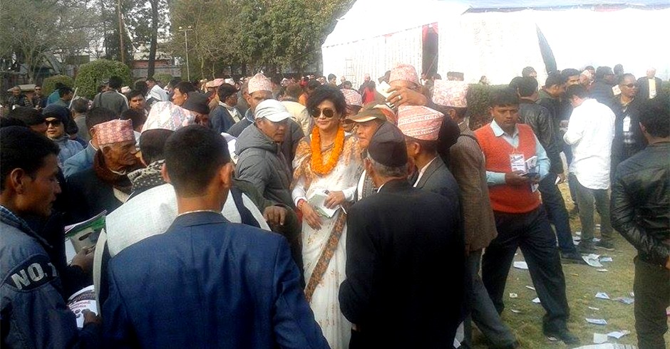 काठमाडौं, ८ फागुन । यतिबेला काठमाडौंको भृकुटीमण्डपमा राप्रपाको एकता महाधिवेशन चलिरहेको छ । शुक्रबार भृकुटीमण्डपमा उद्घाटन भएको महाधिवेशनको अहिले बन्दशत्र चलिरहेको छ । आजै राप्रपाले पार्टीको केन्द्रीय समिति चयन गर्नका लागि निर्वाचन कार्यक्रम सार्वजनिक गरिसकेको छ । चर्चित सेलिब्रेटीहरु गायिका तथा सञ्चारकर्मी कोमल वली साथै चर्चित नायिका रेखा थापा पनि केन्द्रीय सदस्यका लागि उम्मेद्वार बनेका छन् । रेडियो नेपालको सरकारी जागिरबाट राजिनामा दिएर राप्रपाको सक्रिय राजनीतिमा होमिएकी कोमल वलीको चर्चा यतिबेला महाधिवेशन परिसरमा कमल थापको भन्दा बढी देखिन्छ । उनले केन्द्रीय सदस्यको लागि महिला अरक्षणको कोटामा होइन खुला तर्फबाट केन्द्रीय सदस्यको लागि उम्मेदवारी दिएकी छिन् । केही महिना अघिमात्र राप्रपामा प्रवेश गरेकी उनले महाधिवेशन उद्घाटनमा उद्घोषकको भुमिका निर्वाह गरेकी थिइन । मिठो स्वरकी धनी त्यसमाथि साडी ब्लाउमा सजियर यतिबेला प्रतिनिधिसँग भोट माग्न ब्यस्त देखिन्छिन् उनी । सबैको नजरमा परिसकेकी साथै मिठो स्वरकी धनी उनलाई कार्यकर्ताले पनि भोट तपाईलाई भोट दिँदैनौ भनेर कसले भन्ने ? दिदीलाई नदिए कसलाई दिने र ? भन्दै उनलाई थप हौसला प्रदान गर्ने गरेका छन् । त्यसमा पनि उनलाई धेरै मतले जित्ने आत्मविस्वास पैदा भएको उनी बताउँछिन् । सरकारी जागिर र राजनीति एक पटक अघि बढ्न नसक्ने भन्दै जागिरबाट राजीनामा दिएर राजनीतिमा होमिएकी उनी राजनीतिक नेता बनेर देशका लागि केही गर्ने उदेश्य रहेको बताउँछिन् । राप्रपा केन्द्रीय अध्यक्षमा कमल थापाको सुनिश्चितमा भएपनि यतिबेला राप्रपमा महाधिवेशनमा चर्चित सेलिब्रेटीहरु कोमल वली र रेखा थापाकै बढी छ । पछिल्लो चरण राप्रपाले पहिलो पटक केन्द्रीय समितिमा ३३ प्रतिसत महिला प्रतिनिधित्व गराउन महिला सेलिब्रेटीहरुलाई महत्वपूर्ण स्थान दिएको छ । \"\" सेलिब्रटी भएर सम्पूर्ण दर्शकमाझ आफ्नो पहिचान बनाईसकेका उनीहरु यतिबेला राजनीतिमा यसको भुरपुर सदुपयोग गर्न लागिपरेका छन् ।