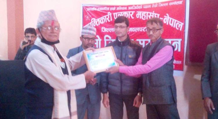 \"\"नवलपरासी, ८ फागुन । क्रान्तिकारी पत्रकार महासंघ नवलपरासीको अध्यक्षमा घनश्याम पोखरेल ‘राजु’ निर्वाचित भएका छन् । आइतबार नवलपरासीको कावासोतीमा सम्पन्न तेस्रो जिल्ला सम्मेलनले पोखरेल नेतृत्वमा २१ सदस्य जिल्ला समिति निर्वाचित गरेको छ । महासंघ उपाध्यक्षमा सुनकली चौधरी र लोकनाथ पंगेनी, सचिव गणेश पाण्डे, कोषाध्यक्ष शोभा जिसी निर्वाचित भएका छन् । अधिवेशनले प्रेम रिमाल, बाबुराम गिरी, सञ्जय तिवारीसहित पाँच सदस्य सल्लाहकार समिति पनि चयन गरेको छ । अधिवेशनको उद्घाटन सत्रमा नेकपा क्रान्तिकारी माओवादीका केन्द्रीय सचिवलाय सदस्य तथा अवध राज्य संयोजक प्रेम सुवेदीले पत्रकारिता क्षेत्रमा राजनीतिक आस्थाकै आधार निषेध गर्ने परिपाटी अन्त्य गर्न श्रमजीवी पत्रकारहरुले संघर्ष गर्नुको विकल्प नभएको बताए । उनले जनपक्षीय पत्रकारिताको महत्वबारेमा चर्चा गरेका थिए । क्रान्तिकारी पत्रकार महासंघका महासचिव केशरमणि कटुवालले पत्रकार महासंघको विवाद तीन दलीय सिण्डिकेटका कारण भएको भन्दै सिण्डिकेट खारेज गर्नुपर्ने माग गरे । नेपाल पत्रकार महासंघमा तीन दलीय सिण्डिकेट खारेज र गैरपत्रकारको भर्ती केन्द्र बनाउने काम तत्काल नरोके आफूहरुले कडा संघर्ष गर्ने चेतावनी दिए । कार्यक्रममा क्रान्तिकारी माओवादीका केन्द्रीय सदस्य तथा नवलपरासी इन्चार्ज अशोक लम्साल, सेक्रेटरी क्षेत्रबहादुर थापा लगायतले शुभकामना दिएका थिए । क्रान्तिकारी पत्रकार महासंघ नवलपरासीले जनजीविका र जनपक्षीय सवालमा २०४६ सालदेखि कलम चलाउँदै आएका अग्रज पत्रकार वावुराम गिरी र प्रेम रिमाललाई सम्मान समेत गरेको थियो ।