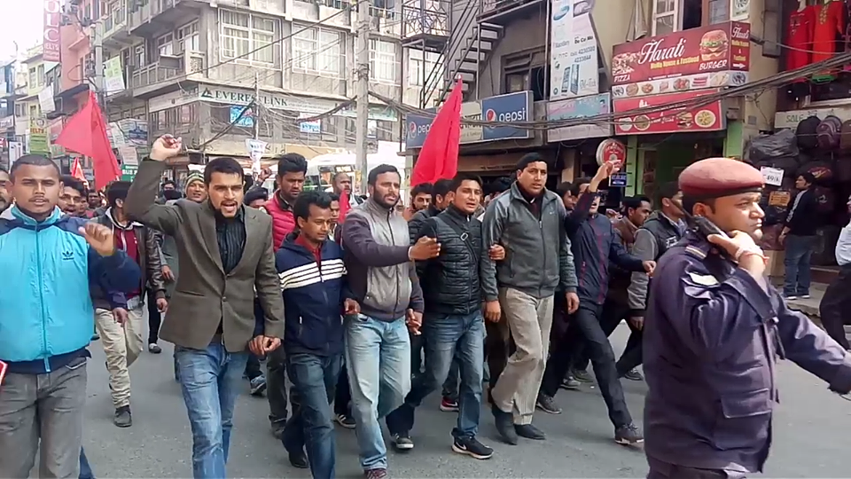 चुनावी प्रक्रिया भाँडेको विरोधमा क्रान्तिकारीको प्रदर्शन, प्रहरी लगाएर भने पनि निर्वाचन गर्न माग