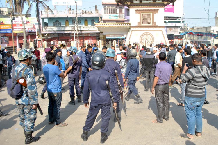 \"\"पर्सा, २५ फागुन । संयुक्त लोकतान्त्रिक मधेसी मोर्चाका नेता कार्यकर्ता र व्यापारीबीच आज वीरगन्जको घन्टाघर चोकमा झडप भएको छ । मधेसी मोर्चाका नेता कार्यकर्ताले बजार बन्द गराउने क्रममा व्यापारीमाथि हातपात गरेपछि व्यापारीले प्रतिकार गरेका हुन् । बजार बन्द गराउने क्रममा आन्दोलनकारीले वीरगन्जको मिना बजारमा रहेका किराना पसल सञ्चालकलाई कुटपिट गरेपछि सोको विरोधमा व्यापारी एकजुट भई आन्दोलनकारीको प्रतिकार गरेका हुन् । व्यापारी र आन्दोलनकारीबीचको झडपका कारण वीरगन्जको घण्टाघर क्षेत्र तनाबग्रस्त बनेको छ । व्यापारीले गरेको प्रतिकारमा परी राष्ट्रिय मधेस समाजवादी पार्टीका पर्सा जिल्ला अध्यक्ष प्रेमबाबु पटेल समान्य घाइते भएका छन् । व्यापारी र आन्दोलनकारीबीचको भिडन्तलाई रोक्न स्थानीय प्रशासनले वीरगन्जको घण्टाघर चोकमा भारी सङ्ख्यामा सुरक्षाकर्मी परिचालित गरेको छ । मोर्चाले आह्वान गरेको दुईदिने मधेस बन्दको आज दोस्रो दिन वीरगन्जमा रहेको बजार, उद्योग, वित्तीय संस्था शैक्षिक संस्था, सवारी साधन सञ्चालनमा आएका छैनन् । वीरगन्जबाट मुलुकको विभिन्न स्थानका लागि सञ्चालन हुने लामो तथा छोटो दुरीका सवारीसाधन सञ्चालनमा नआउँदा सेवाग्राही मारमा परेका छन् । रासस
