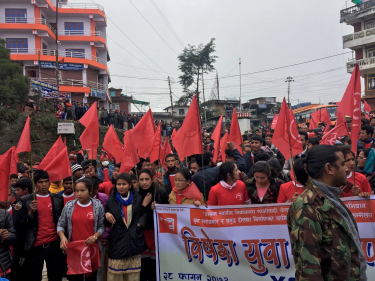 \"\"दोलखा, २९ फागुन । नेकपा माओवादी केन्द्रको सहायक संगठन वाइसिएल नेपालले दोलखामा भव्य युवा मार्चपास गरेको छ । \"\"एकताको दोस्रो जिल्ला सम्मेलन उद्घाटनका क्रममा जिल्लाका विभिन्न गाउँपालिकाहरुबाट आएका युवाहरुले चरिकोट बजारमा राता टिसर्टसहित मार्चपास गरेका हुन् । \"\"पछिल्लो समय सिथिलजस्तो देखिएको माओवादीलाई जिल्लामा हुने विभिन्न संगठनका भेला तथा सम्मेलनहरुले सक्रिय बनाईरहेको बेलामा दोलखामा वाइसिएलको सम्मेलन सम्पन्न भएको हो । \"\"दोलखा माओवादी नेताहरुले पानि र हिउँका कारण अझै सोचेजस्तो प्रदर्शन हुन नसकेको र युवाहरु बिच बाटोमै अड्किएको बताएका थिए । जिल्ला सम्मेलनले सन्तोष केसीको अध्यक्षतामा जिल्लामा ५७ सदस्यिय जिल्ला समिति निर्बाचित गरेको छ । मार्चपास पछि सम्पन्न उद्घाटन सत्रमा माओवादी केन्द्रका स्थायी समिति सदस्य तथा ३ नं. प्रदेशका संयोजक झक्कु सुवेदी, वाईसिएलका पूर्व महासचिव तथा संगठन विभागका प्रमुख दीपशिखा, दोलखा माओवादी केन्द्रका सहइन्चार्ज विशाल खड्का लगायतले सम्बोधन गरेका थिए । सम्बोधनका क्रममा प्राय सबै वक्ताहरुले एमालेको नक्कली राष्ट्रवादको भण्डाफोर गर्नुका साथै परिवर्तनको संवाहक माओवादी भएको बताएका थिए । \"\"